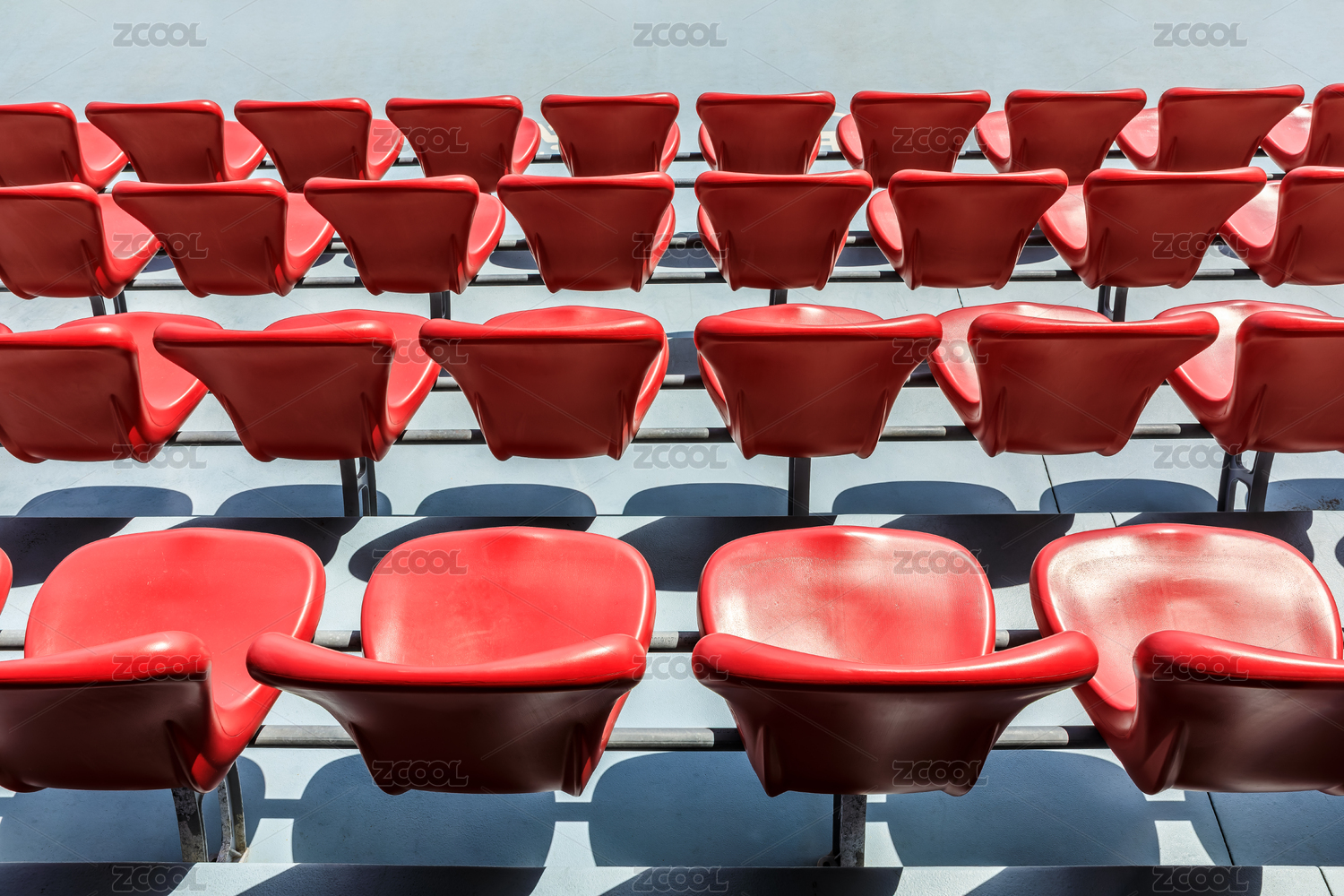 電影院演出廳內(nèi)幾排紅色的無人座椅