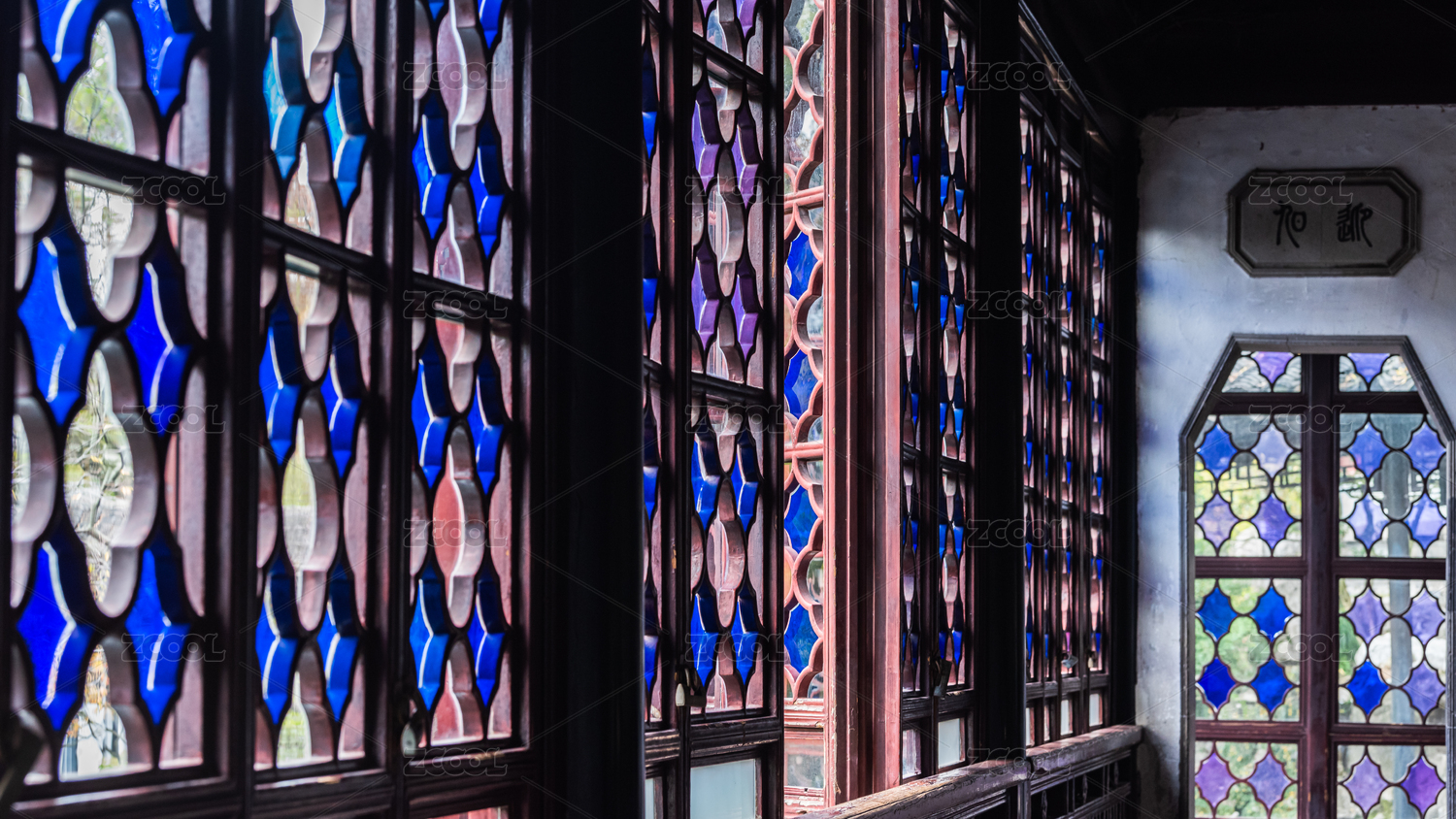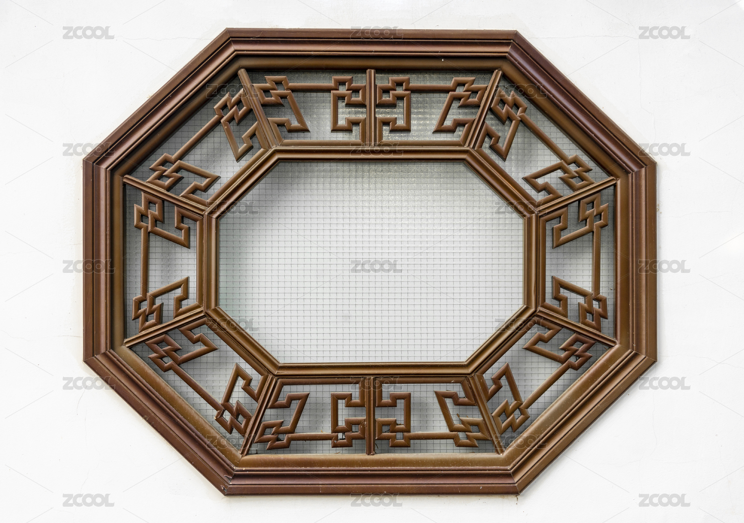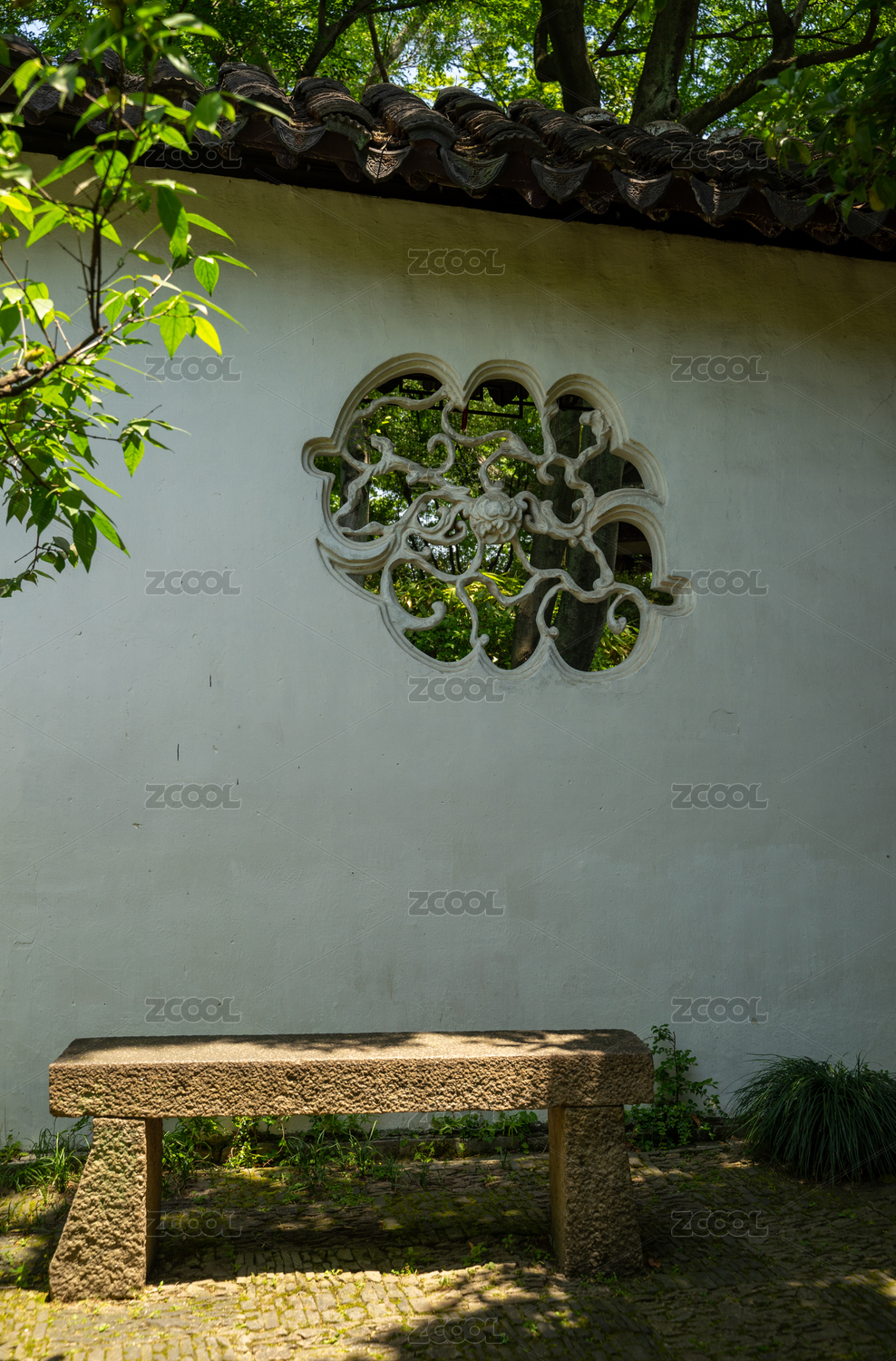 中式傳統(tǒng)園林里用瓦片搭建的鏤空窗