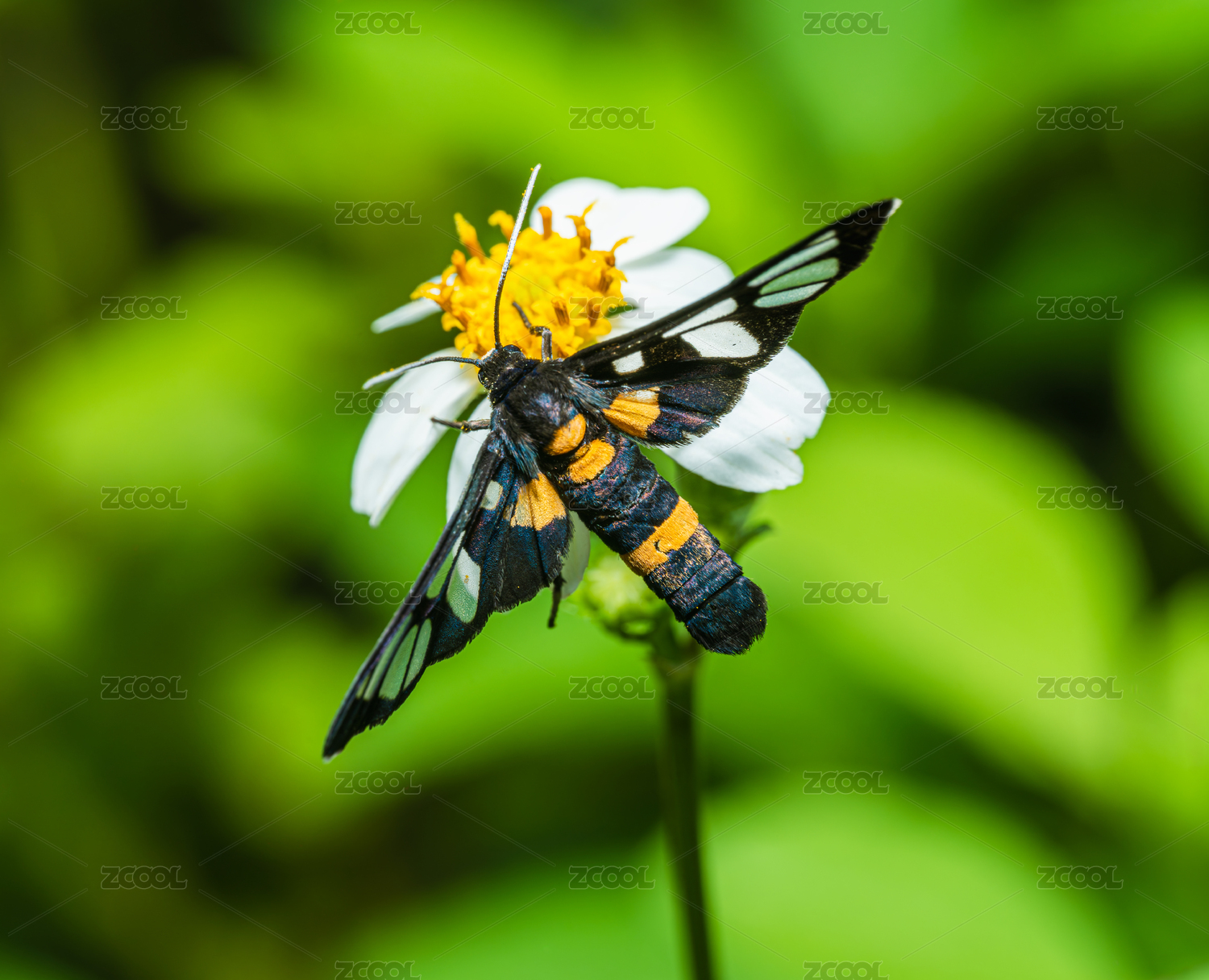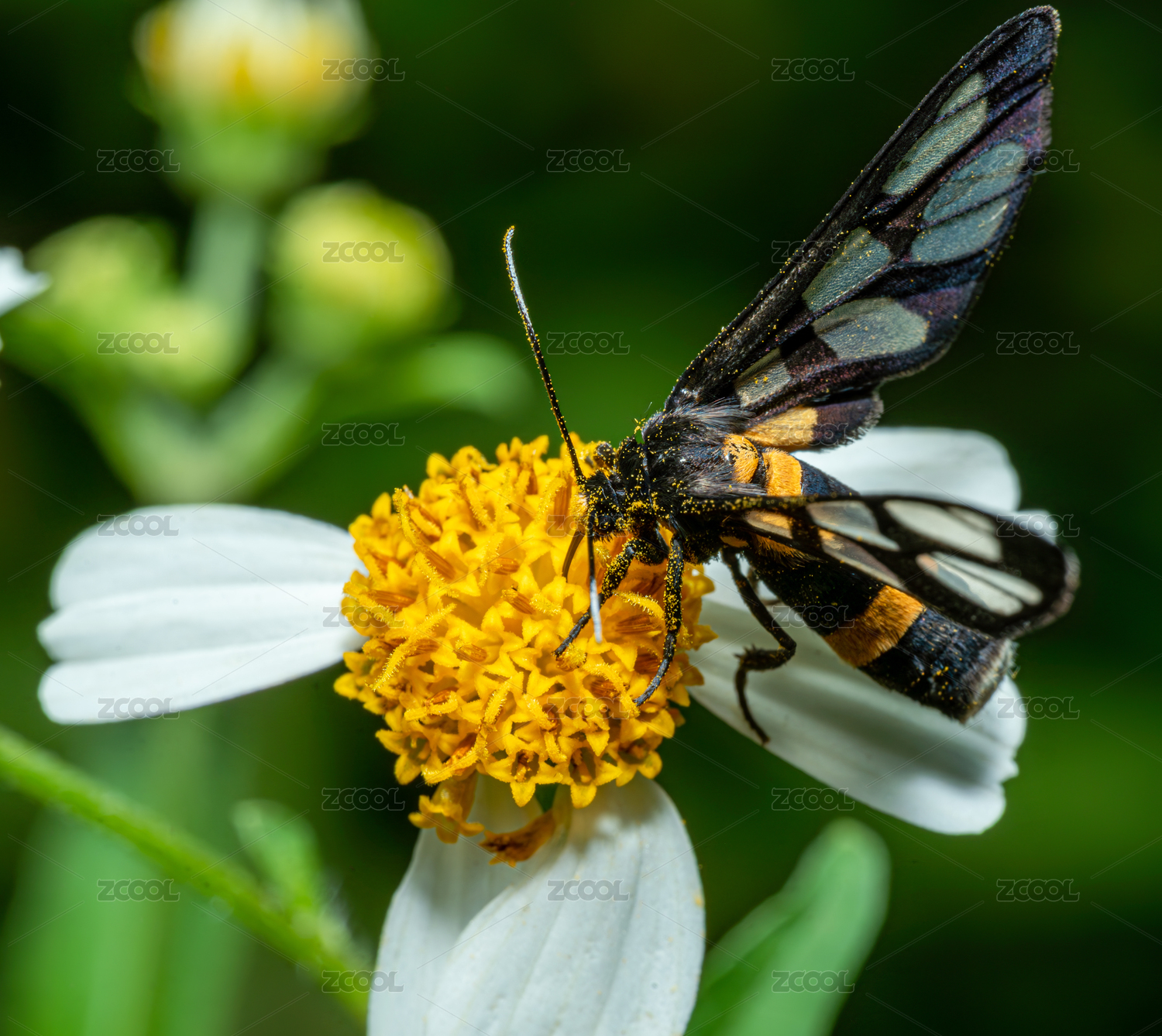 自然中的昆蟲鬼針草花朵上的鹿蛾