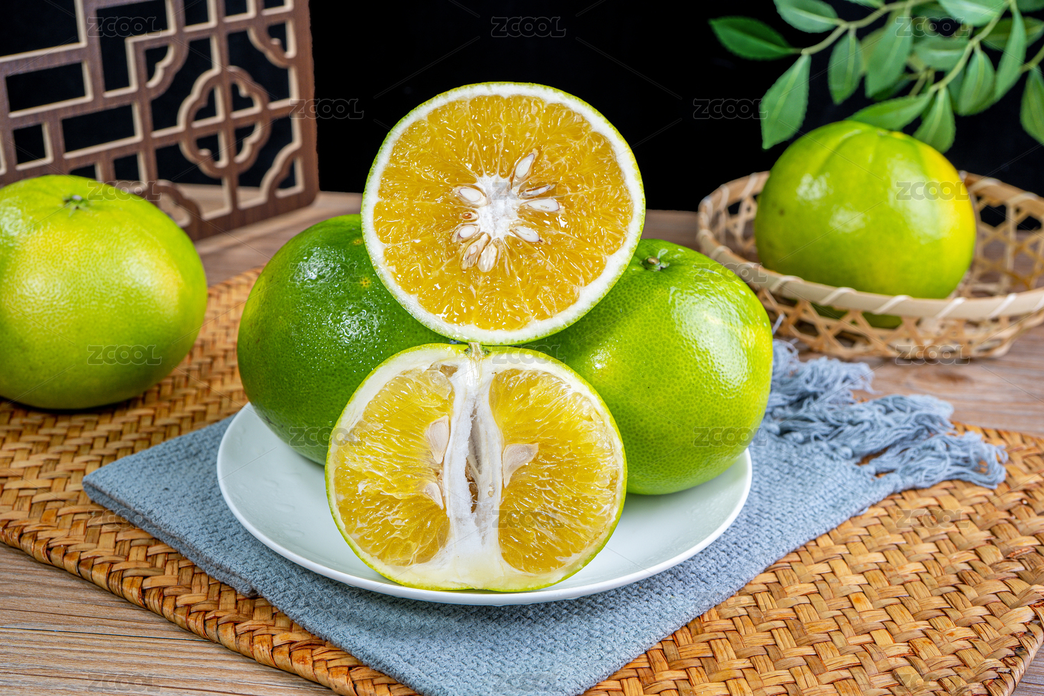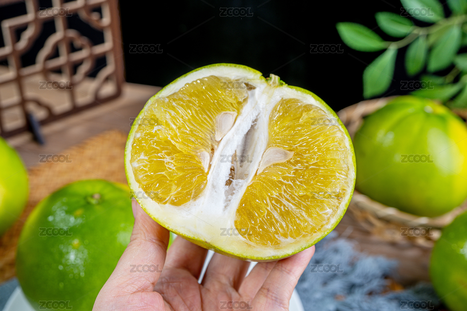 切開(kāi)的青皮葡萄柚