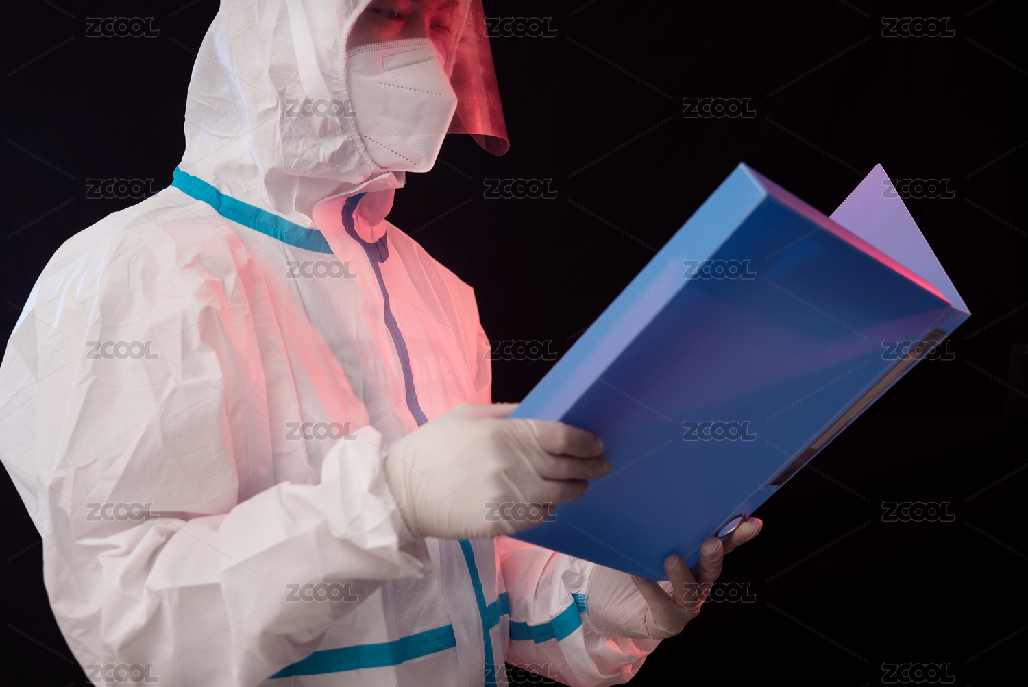 全身防疫服的醫(yī)生手持文件夾