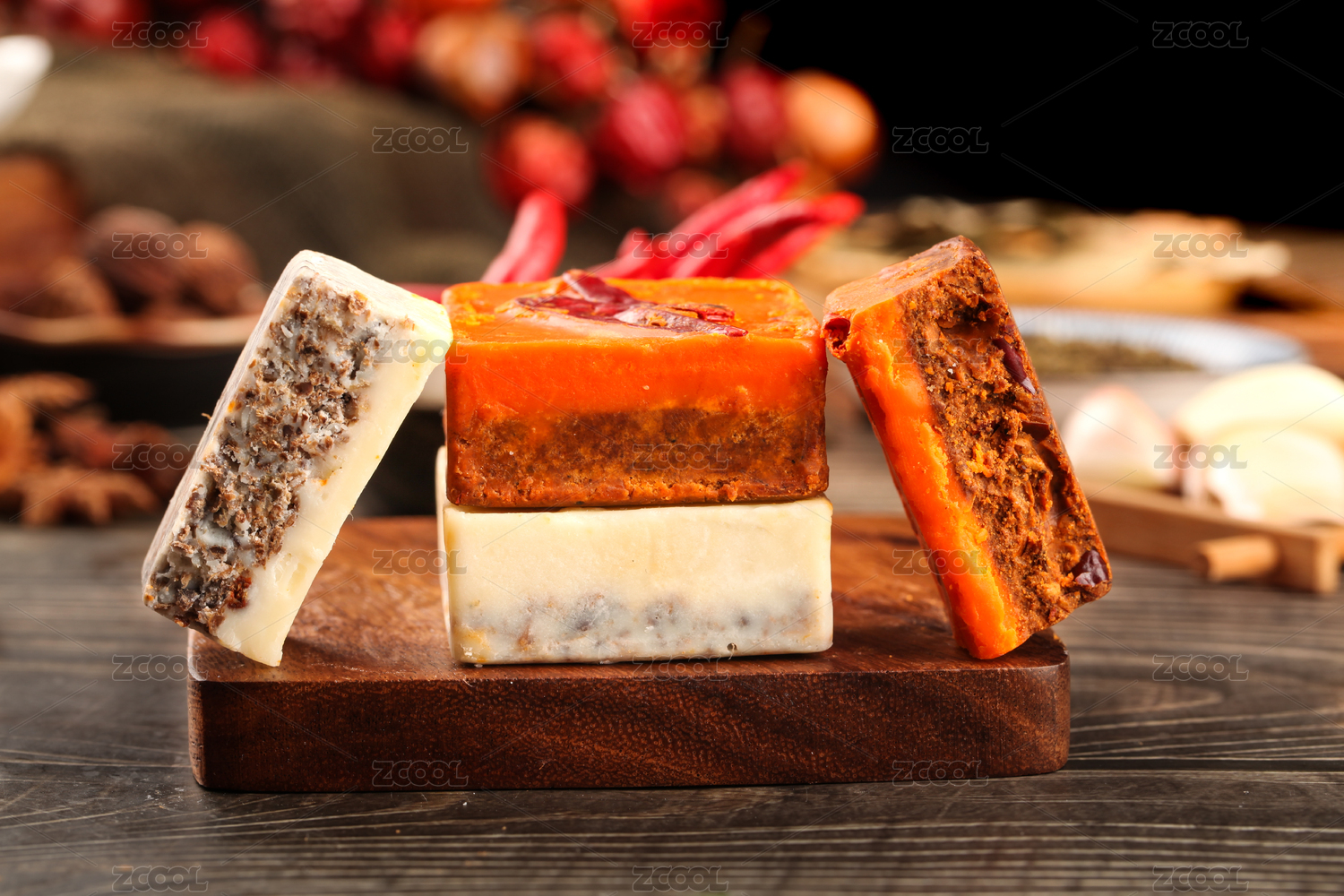 木底上盤子里的鴛鴦火鍋底料