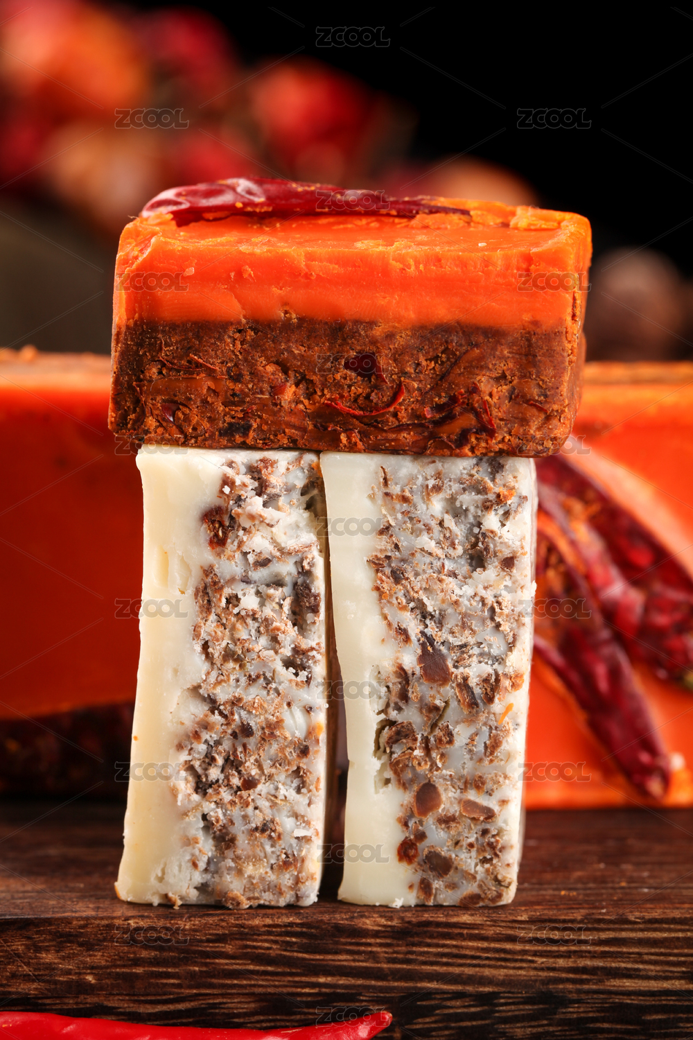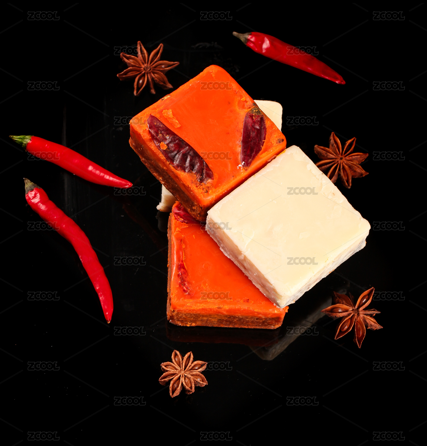 黑底上的重慶鴛鴦火鍋底料