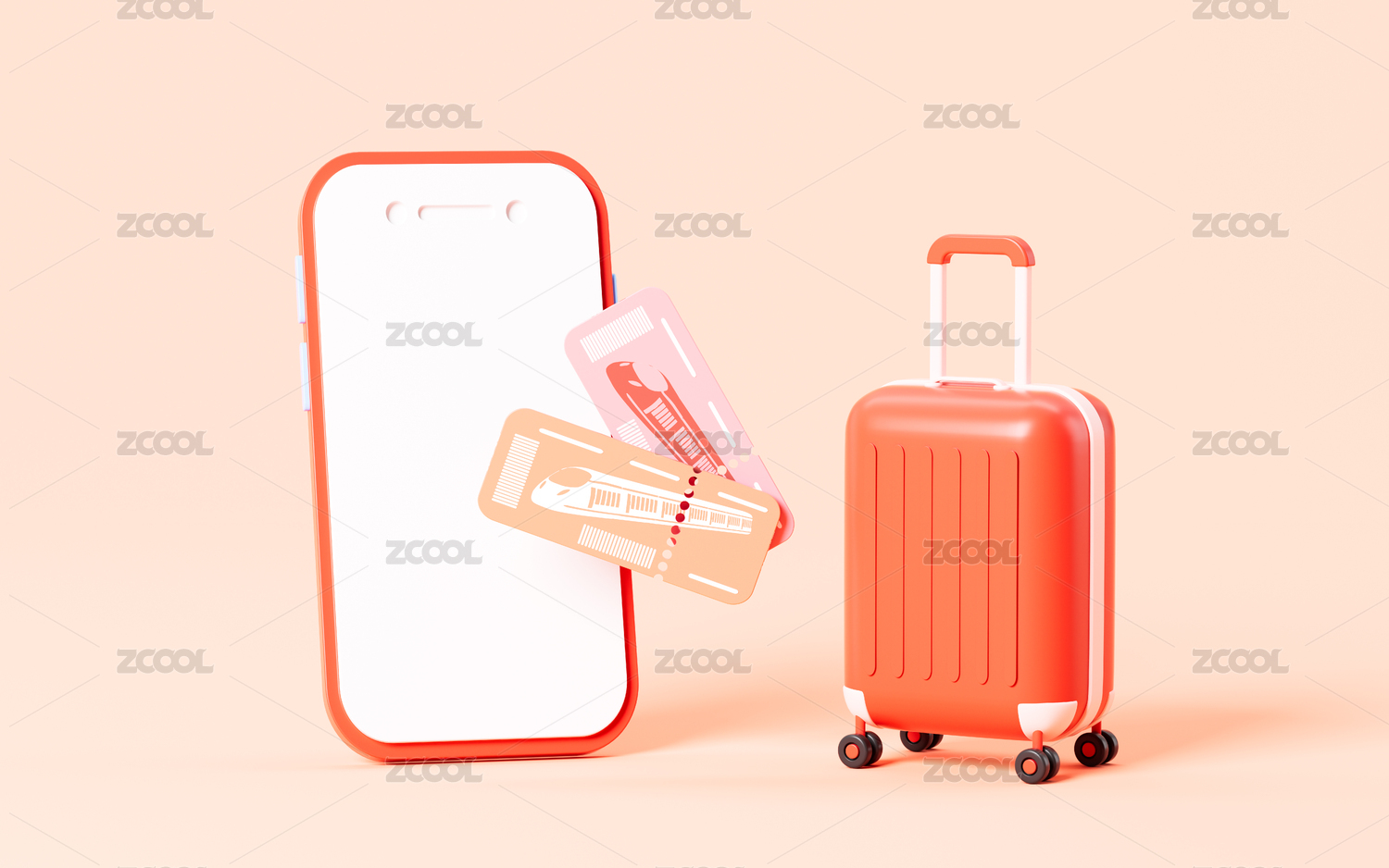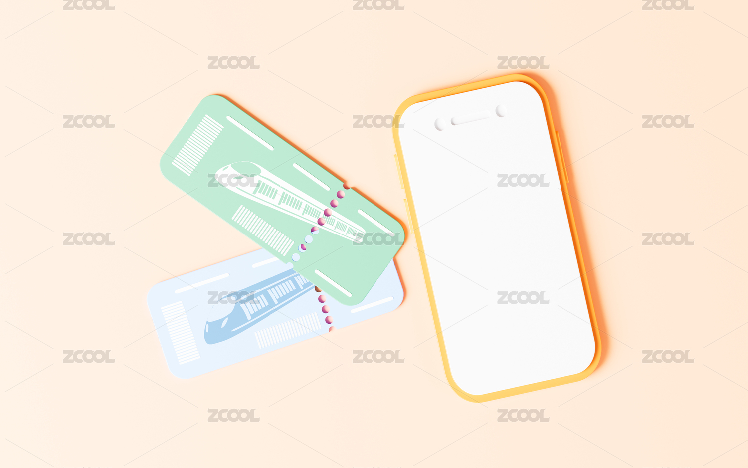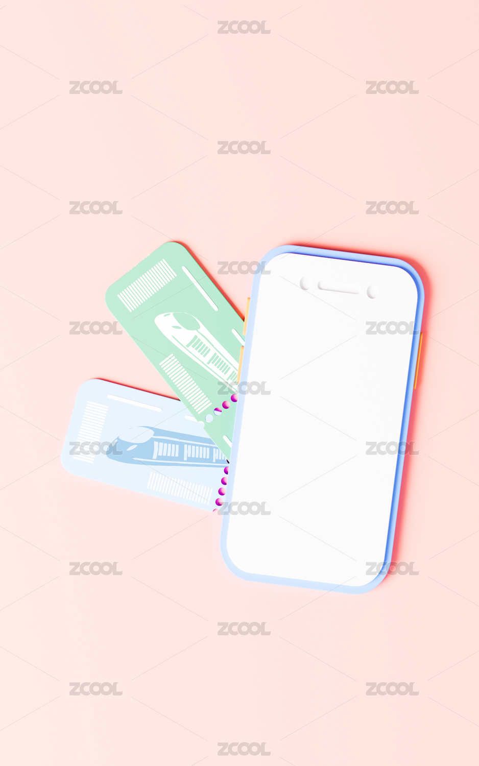 手機(jī)線上預(yù)定火車票高鐵票3D渲染