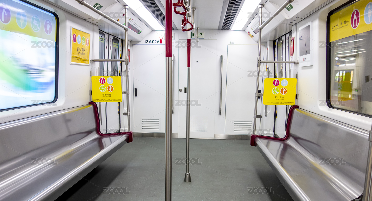 沒(méi)有人的廣州地鐵車廂內(nèi)部環(huán)境