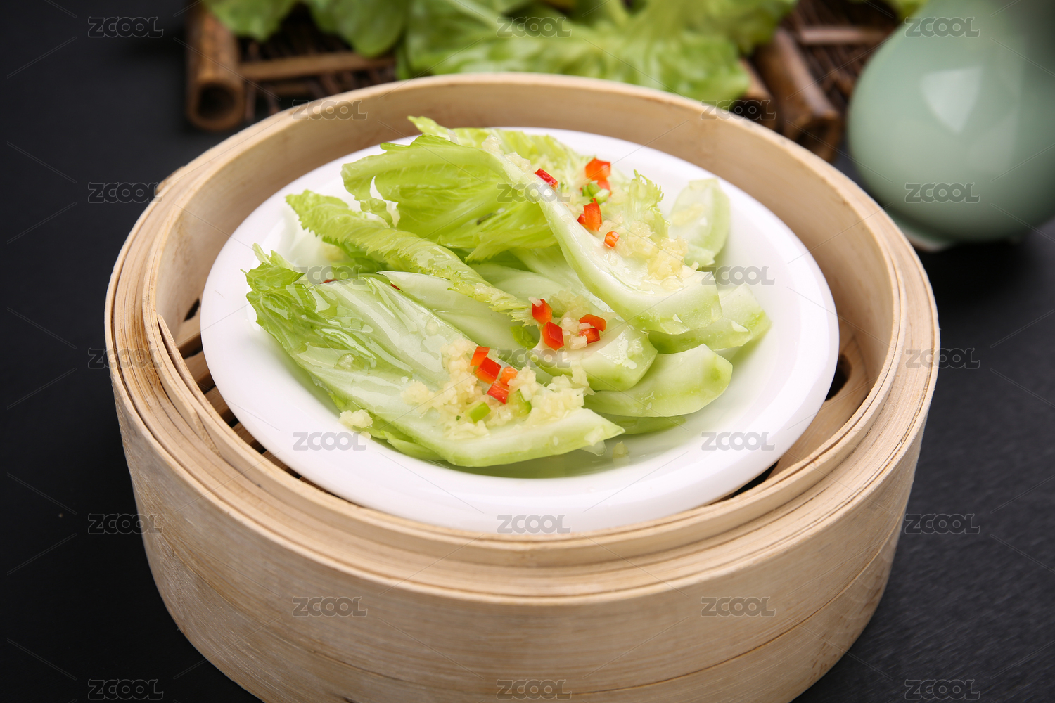 木盤子上的水東芥菜