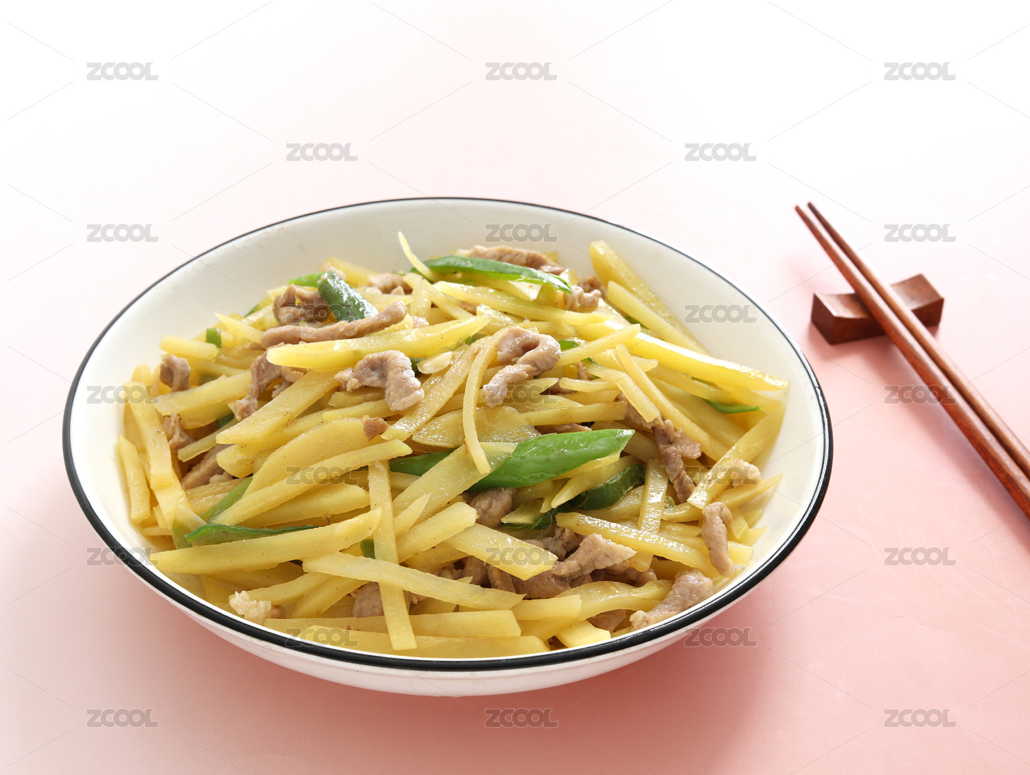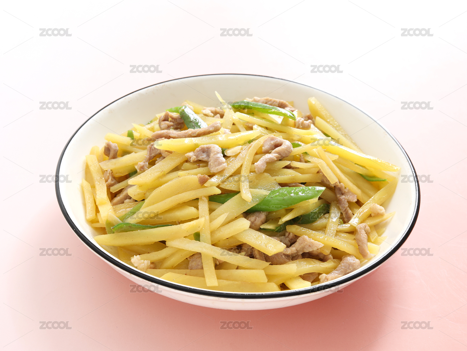 桌面上的一盤子中餐家常菜瘦肉炒土豆絲