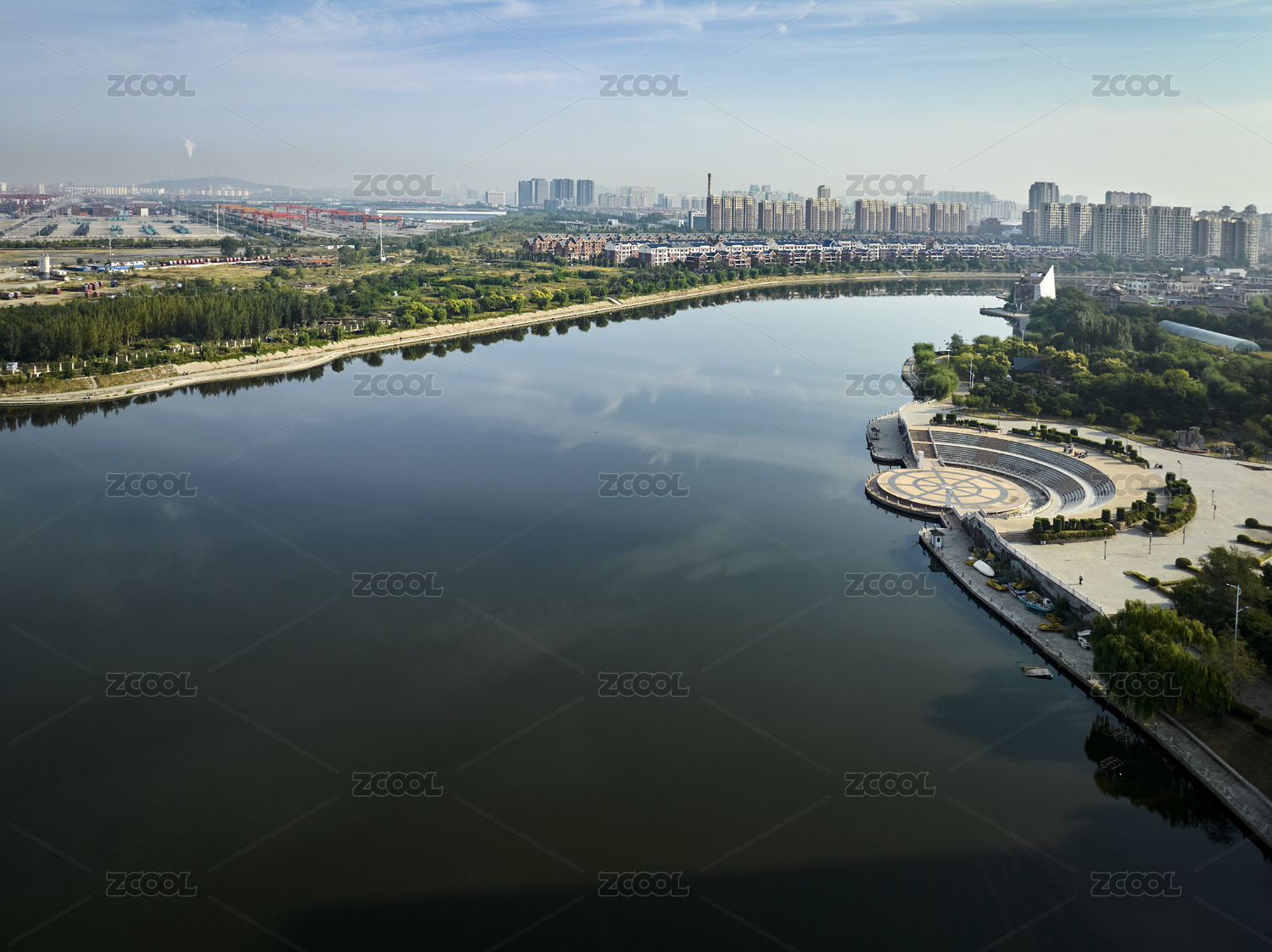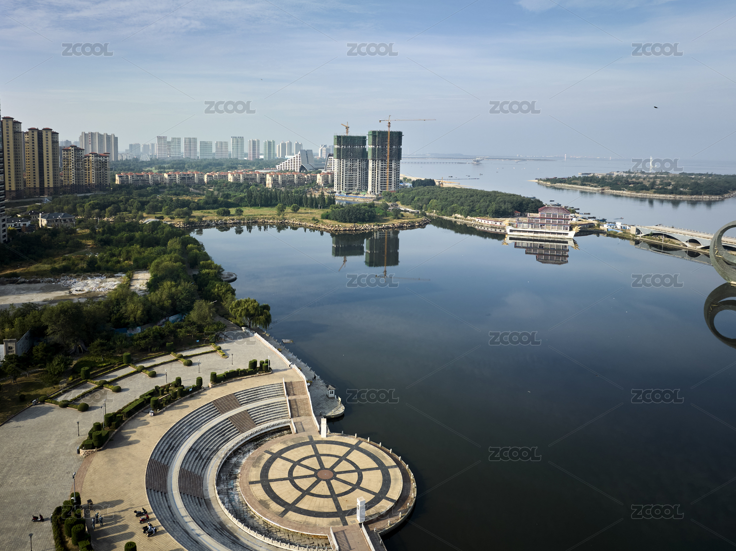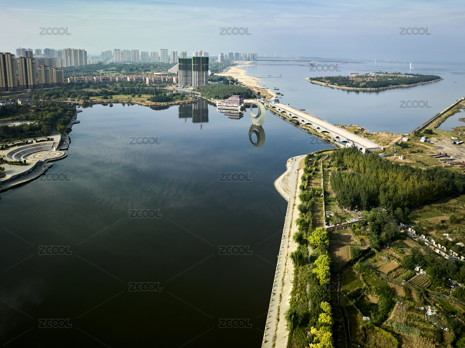 遼寧省營口市月亮湖公園航拍圖片