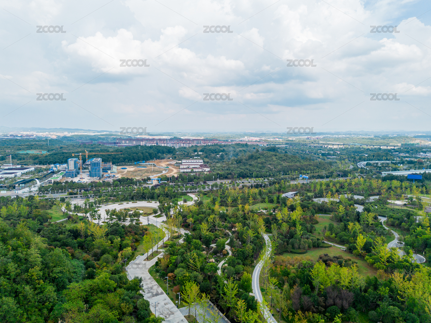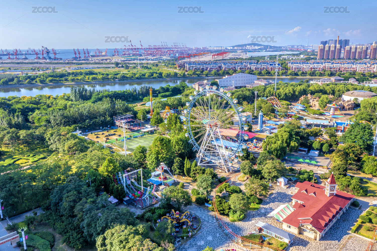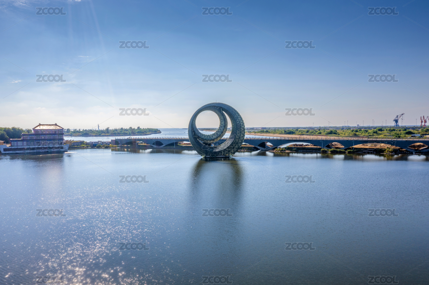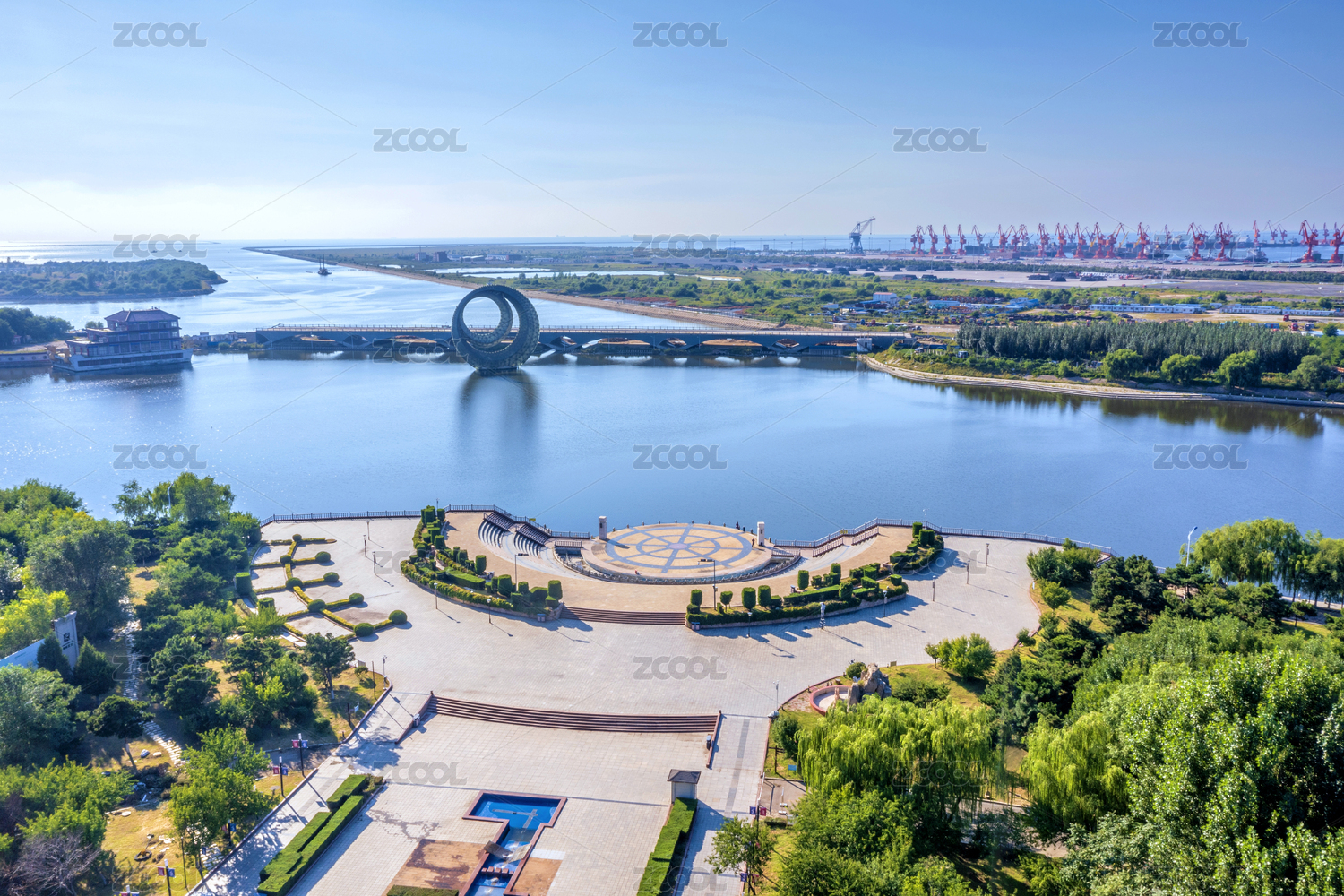 遼寧省營口市月亮湖公園航拍圖片