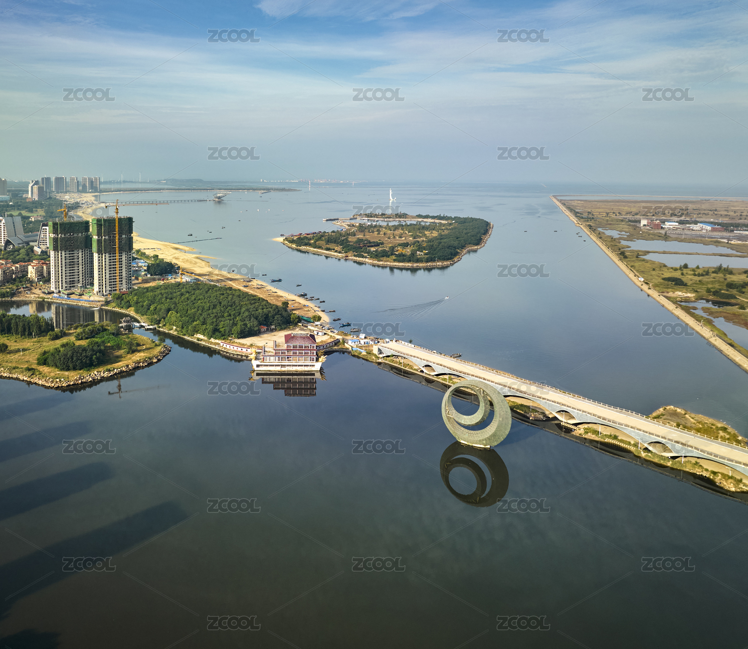 中國遼寧營口鲅魚圈月亮湖公園航拍