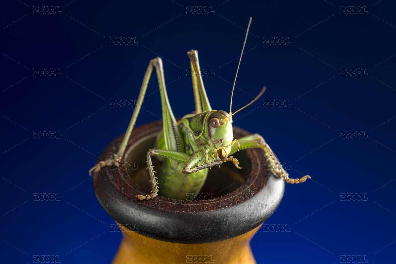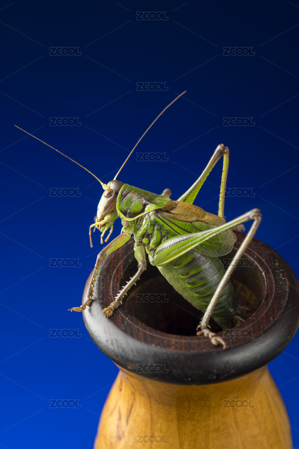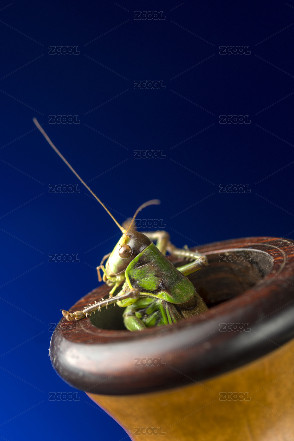 站在蟈蟈葫蘆上的蟈蟈特寫玩冬蟲概念