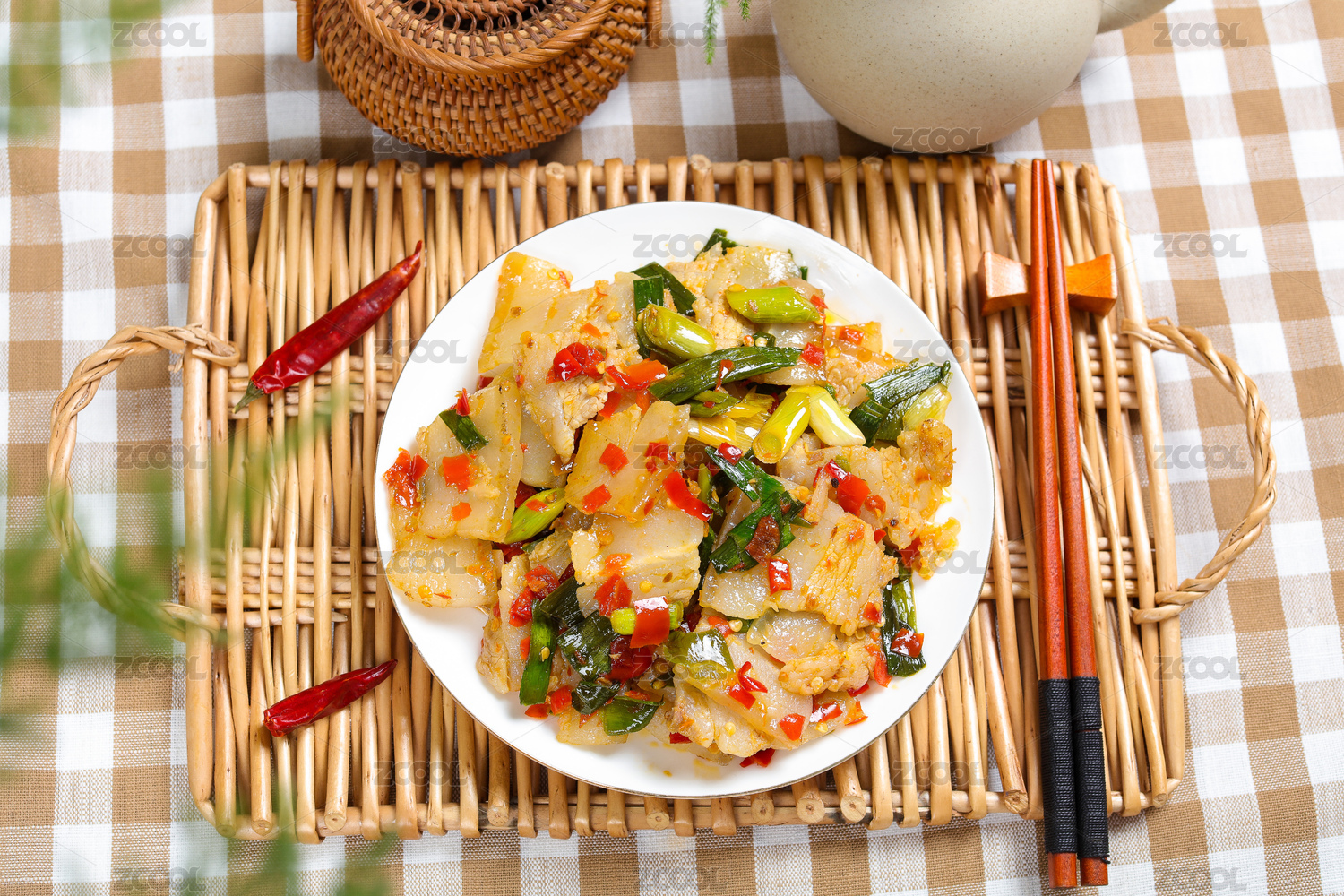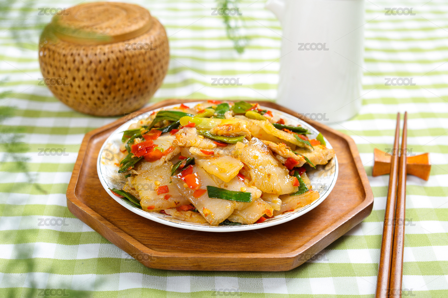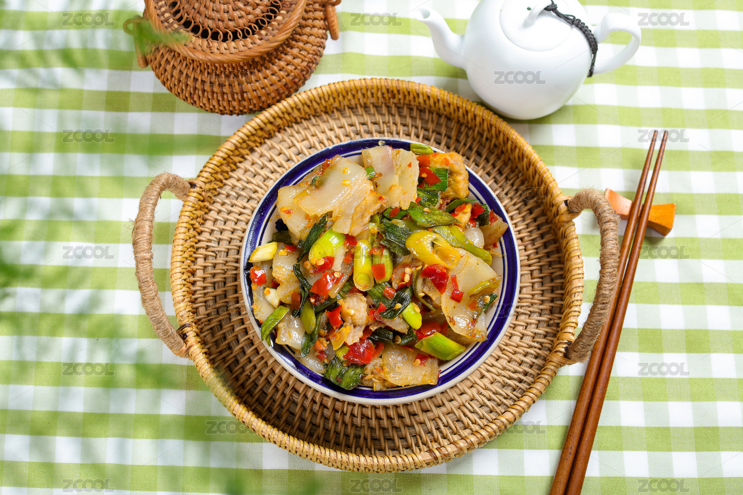 家常小炒菜肴剁椒蒜苗炒白肉