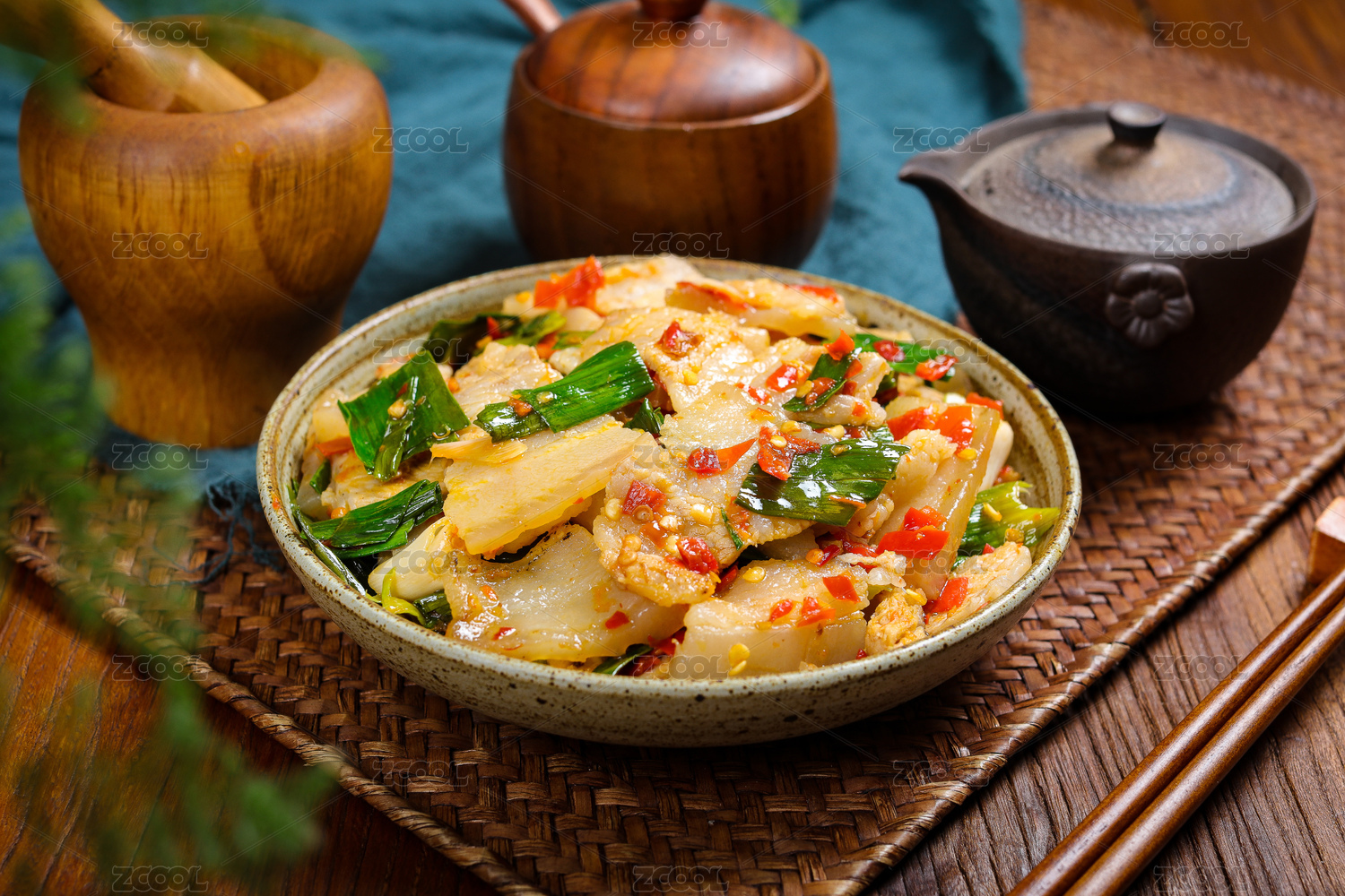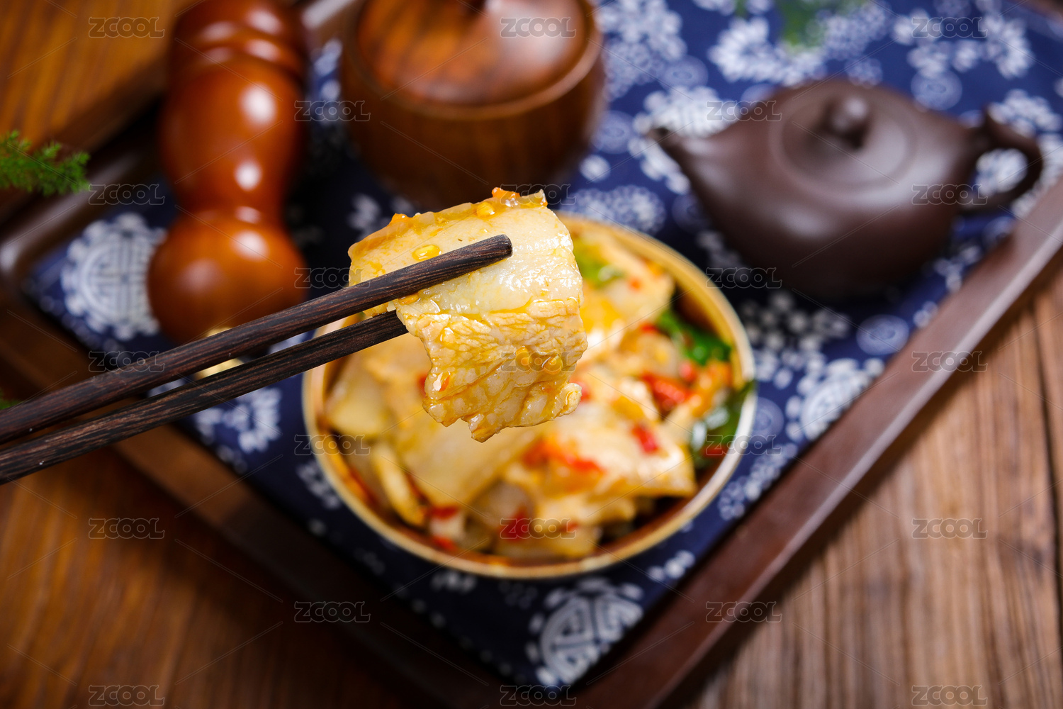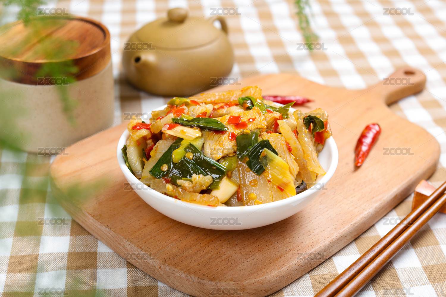 家常小炒菜肴剁椒蒜苗炒白肉
