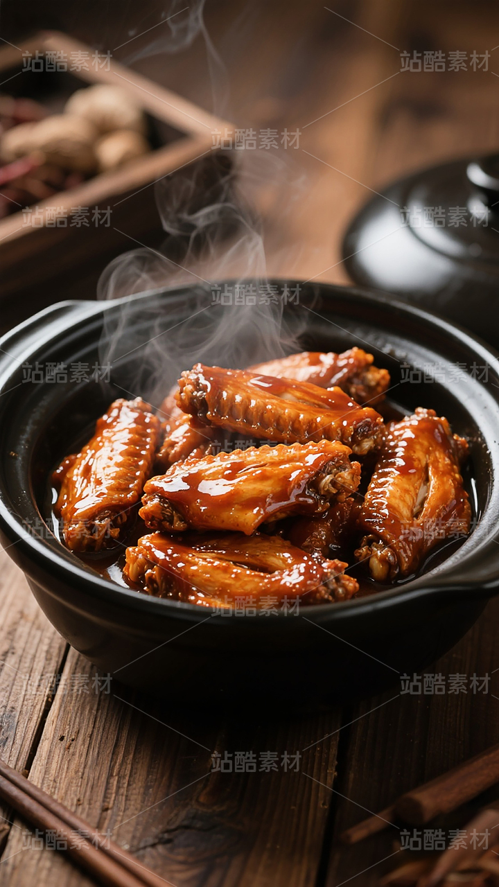 裝在砂鍋里的秘制桂花青豆燉雞翅