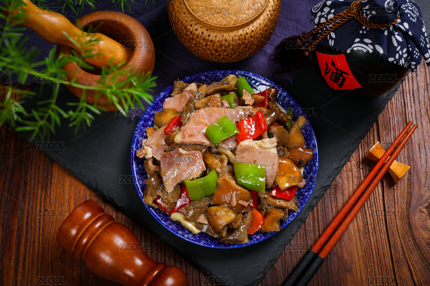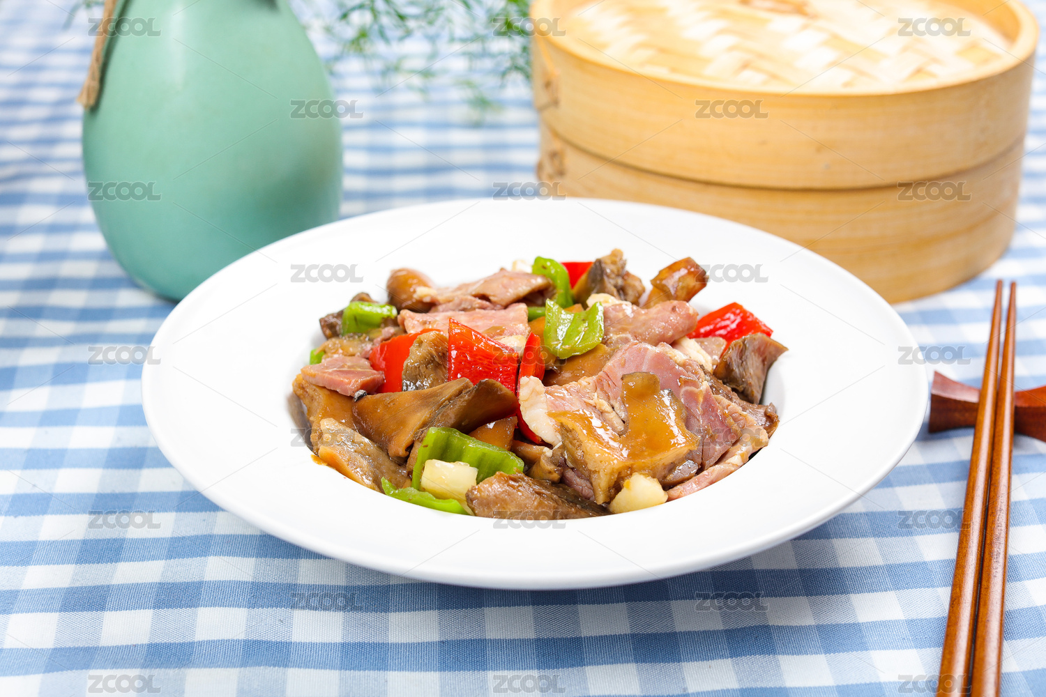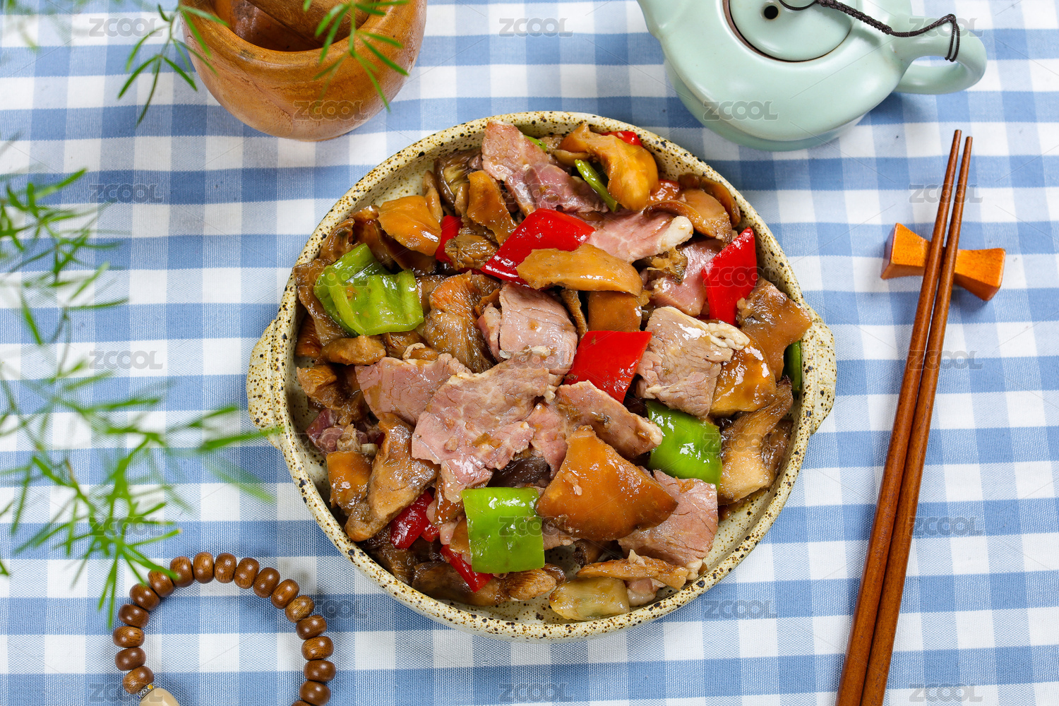 特色農(nóng)家菜火腿肉炒谷熟菌