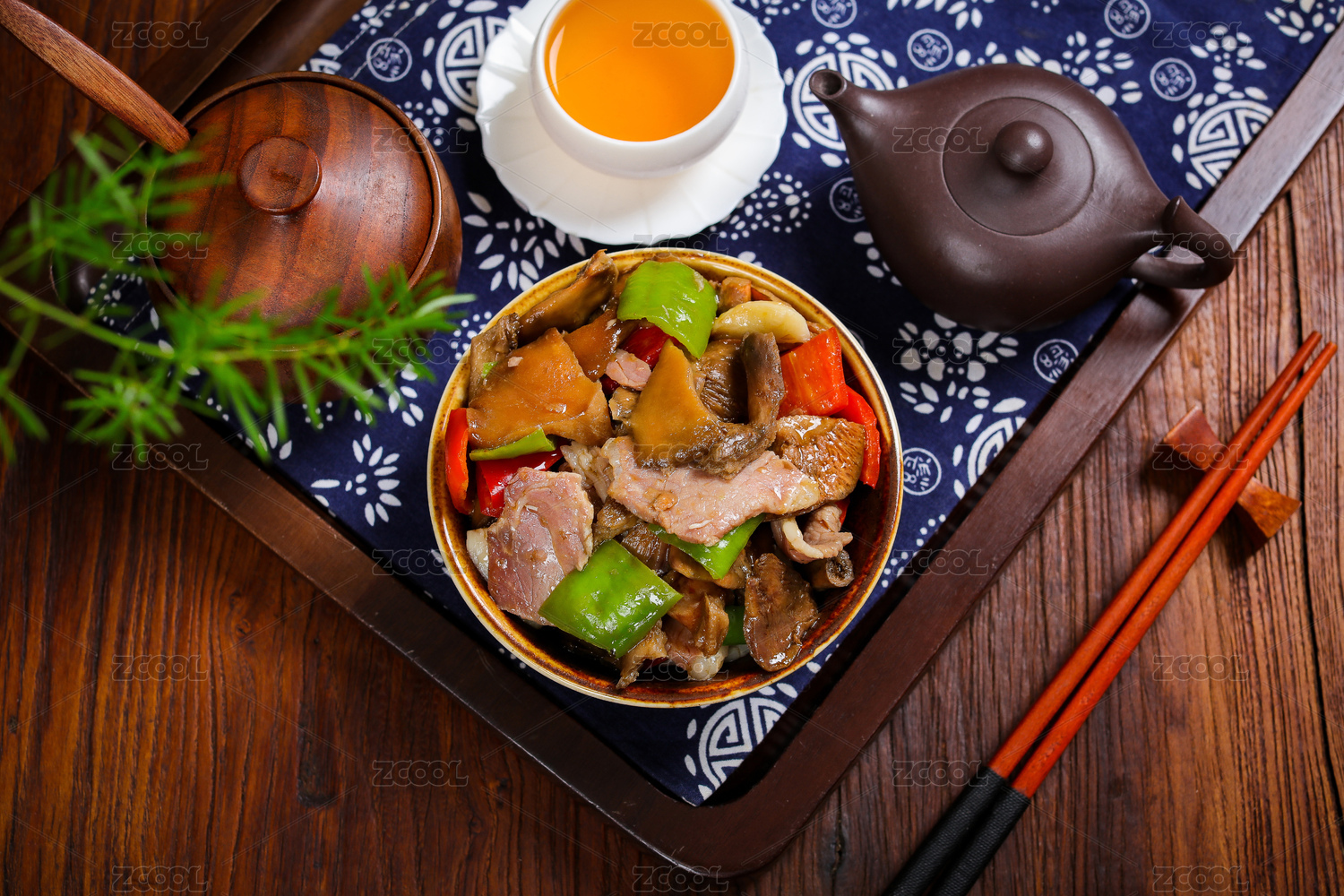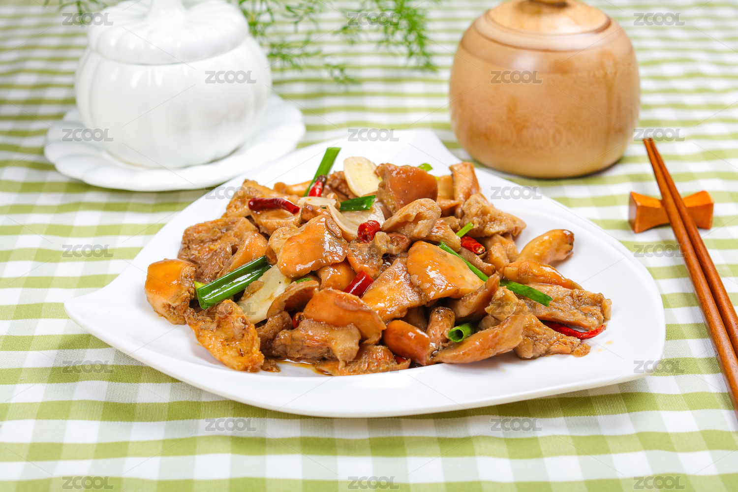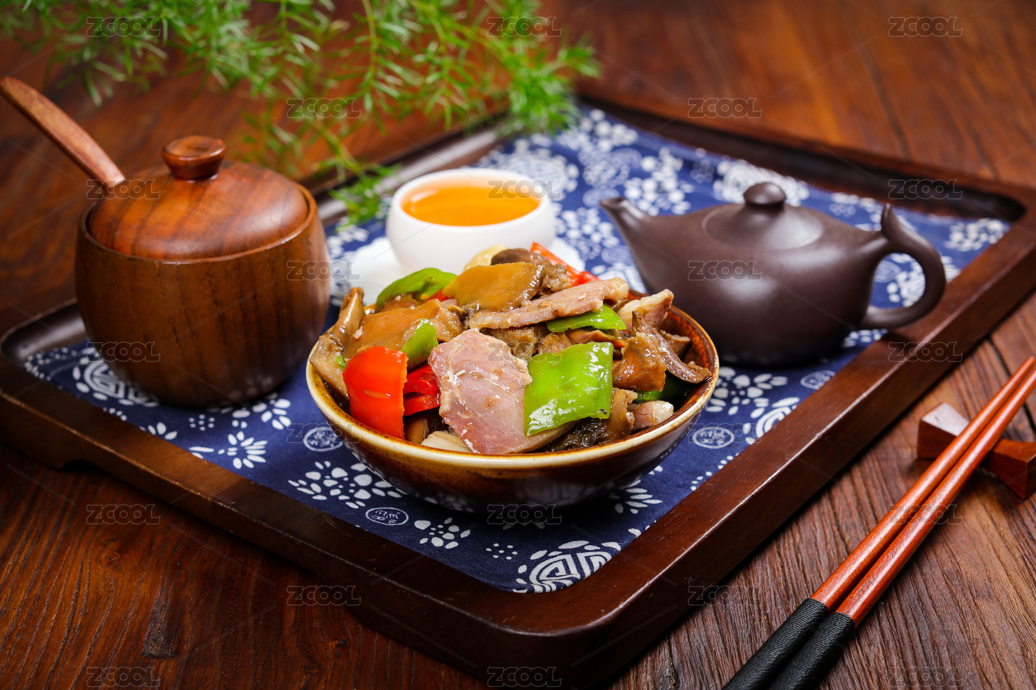 特色農(nóng)家菜火腿肉炒谷熟菌