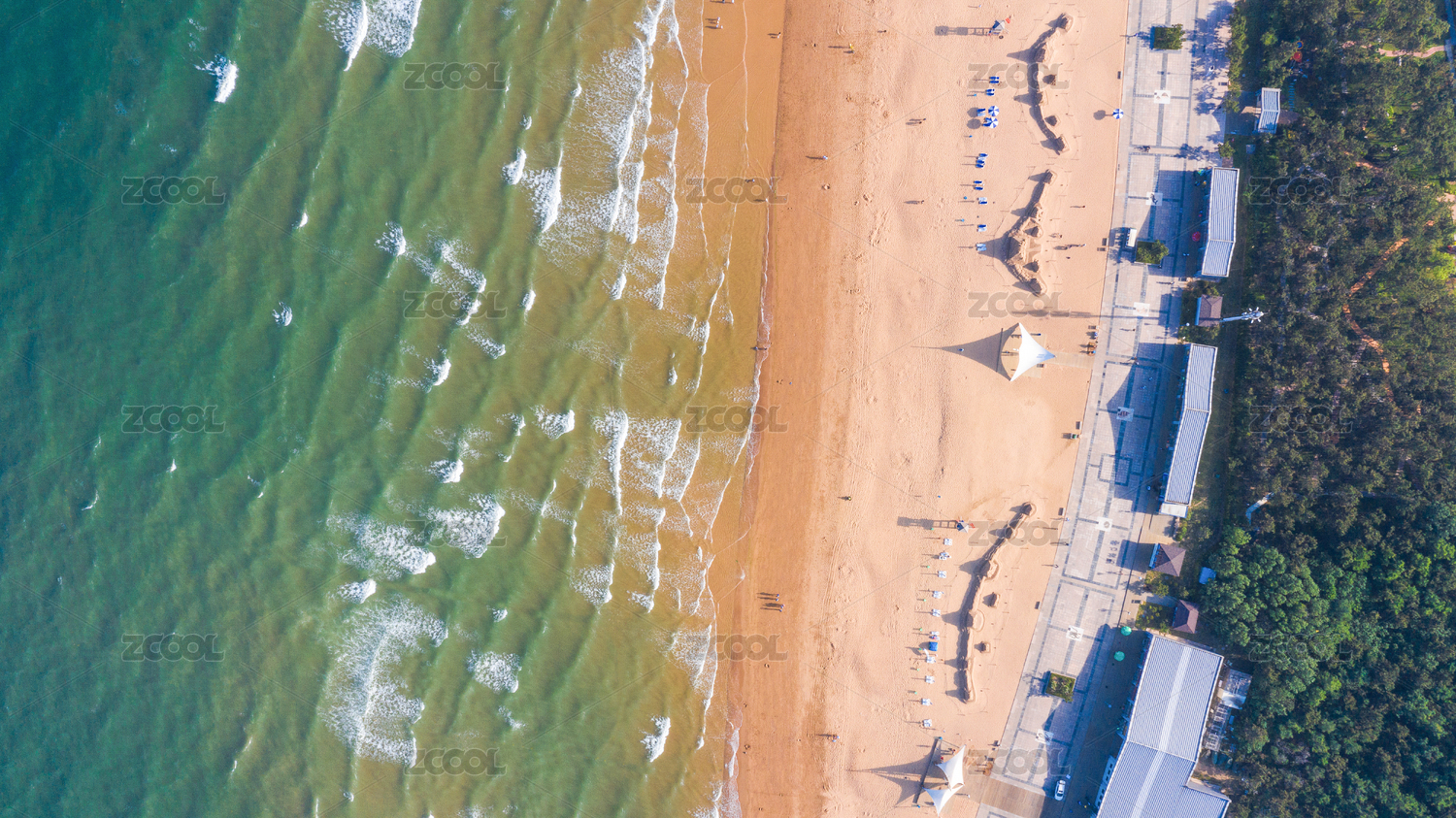日照萬(wàn)平口景區(qū)的海浪與沙灘航拍圖
