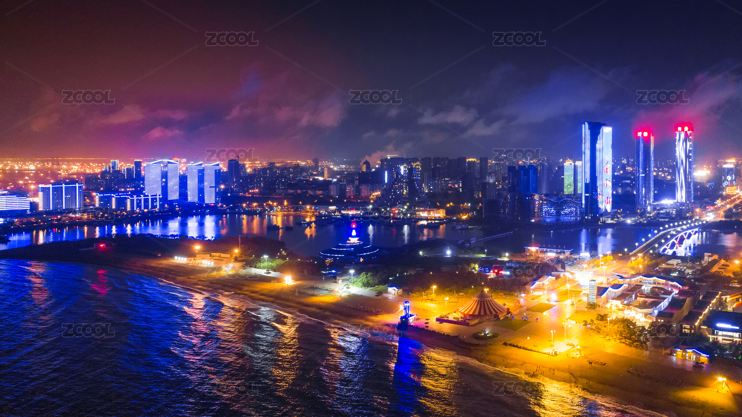 航拍山東省日照市萬(wàn)平口海灘夜景