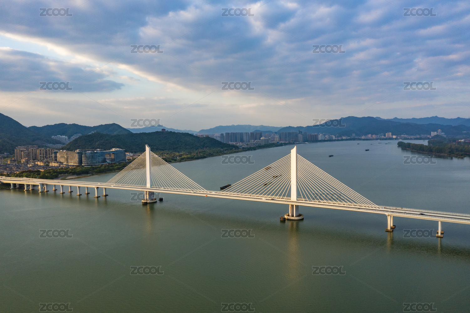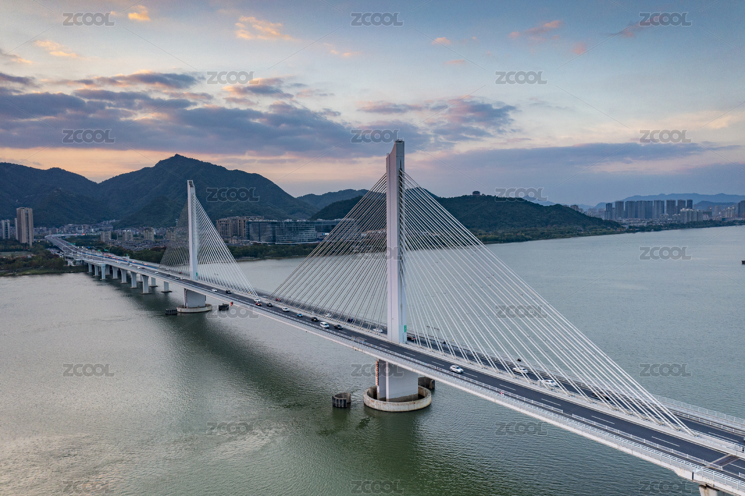 浙江省杭州富陽(yáng)富春大橋富春江晨曦航拍