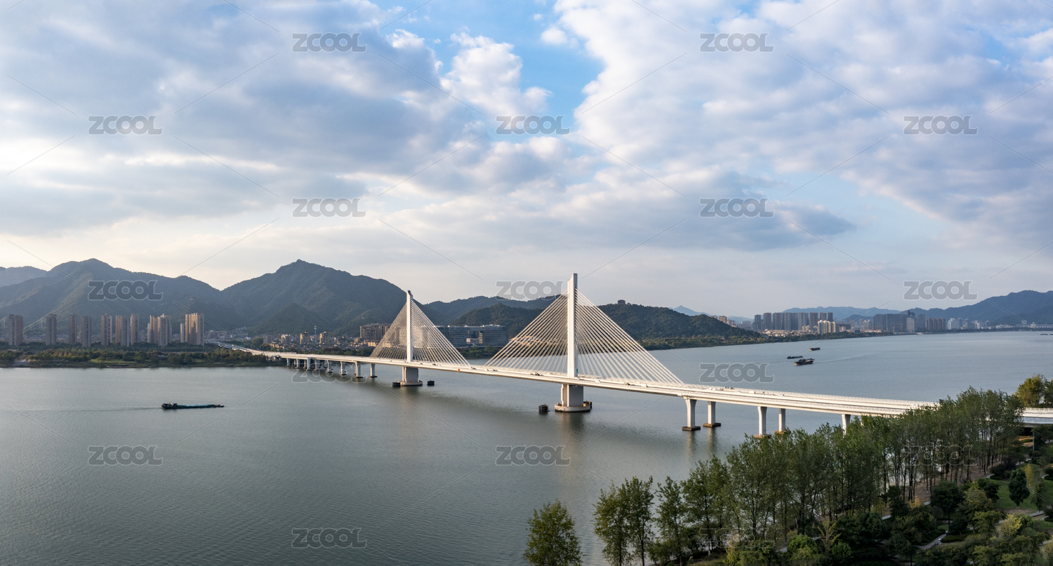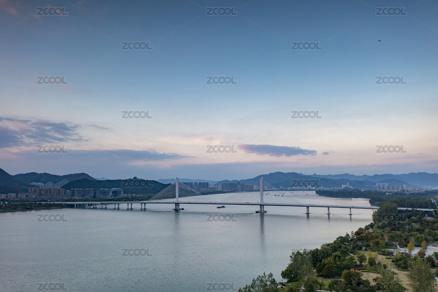 杭州富陽(yáng)富春江富陽(yáng)大橋沿江風(fēng)光