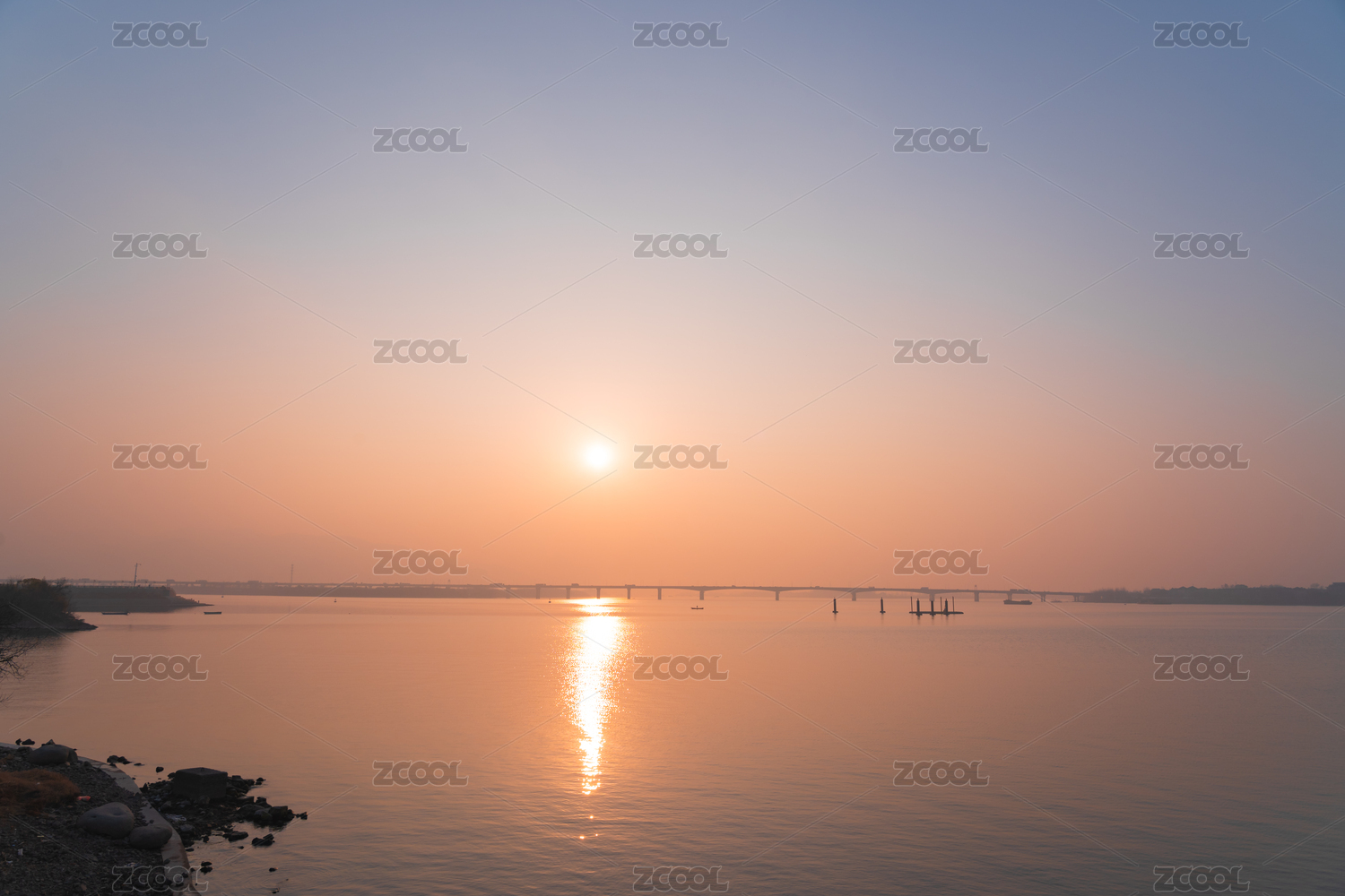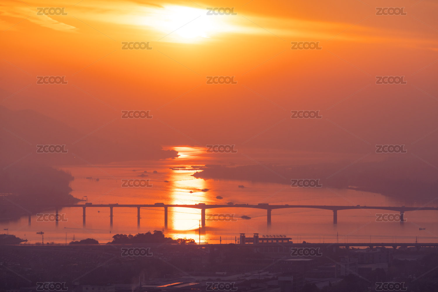 浙江杭州蕭山區(qū)三江口袁浦大橋夕陽(yáng)日落自然