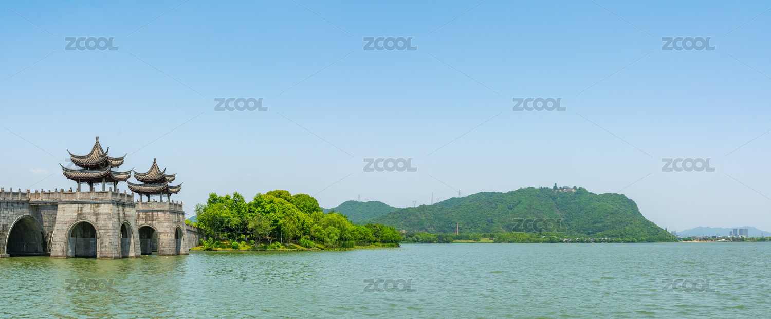 中國浙江蕭山湘湖旅游度假區(qū)湘湖風(fēng)光寬幅