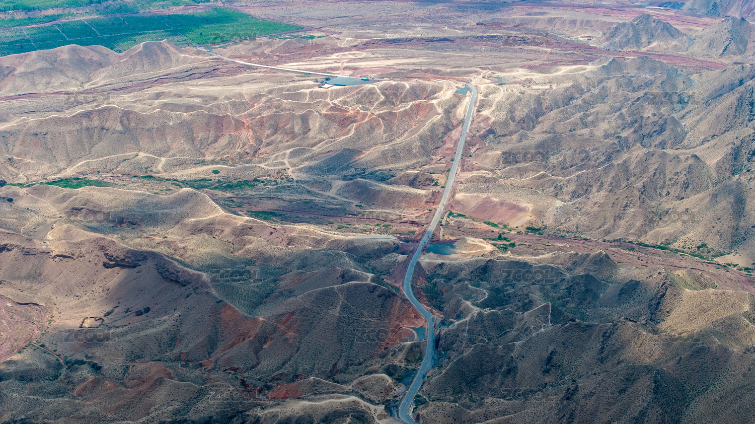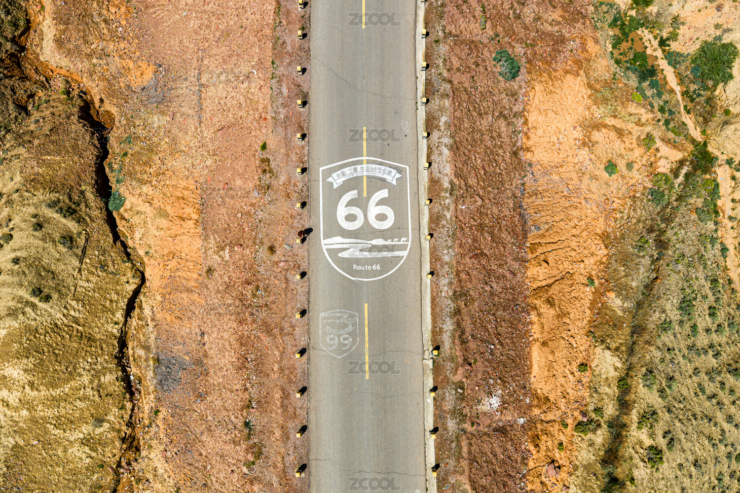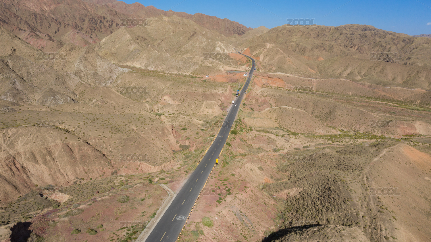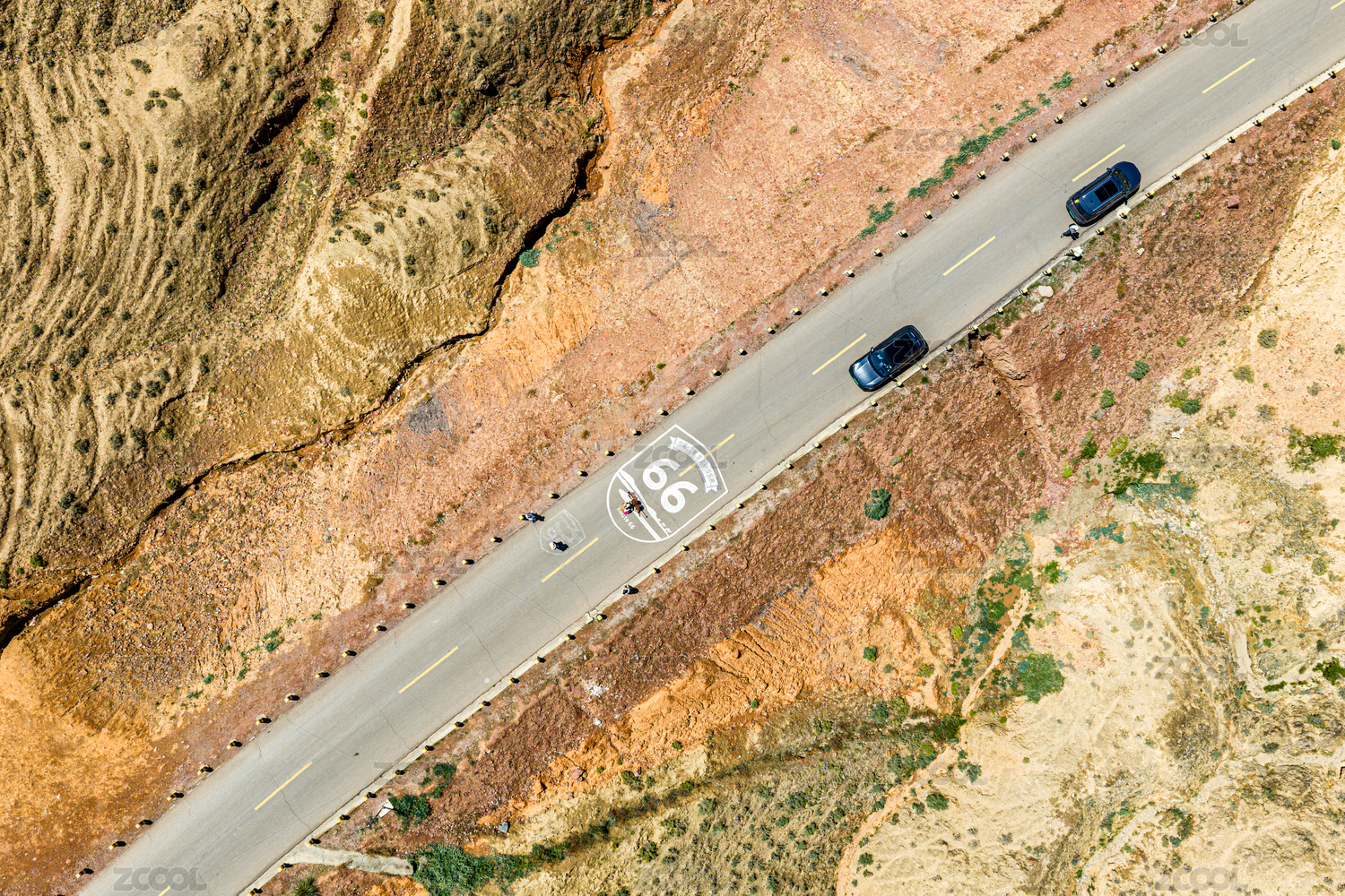 中國寧夏中衛(wèi)66號公路和侵蝕地貌航拍視角