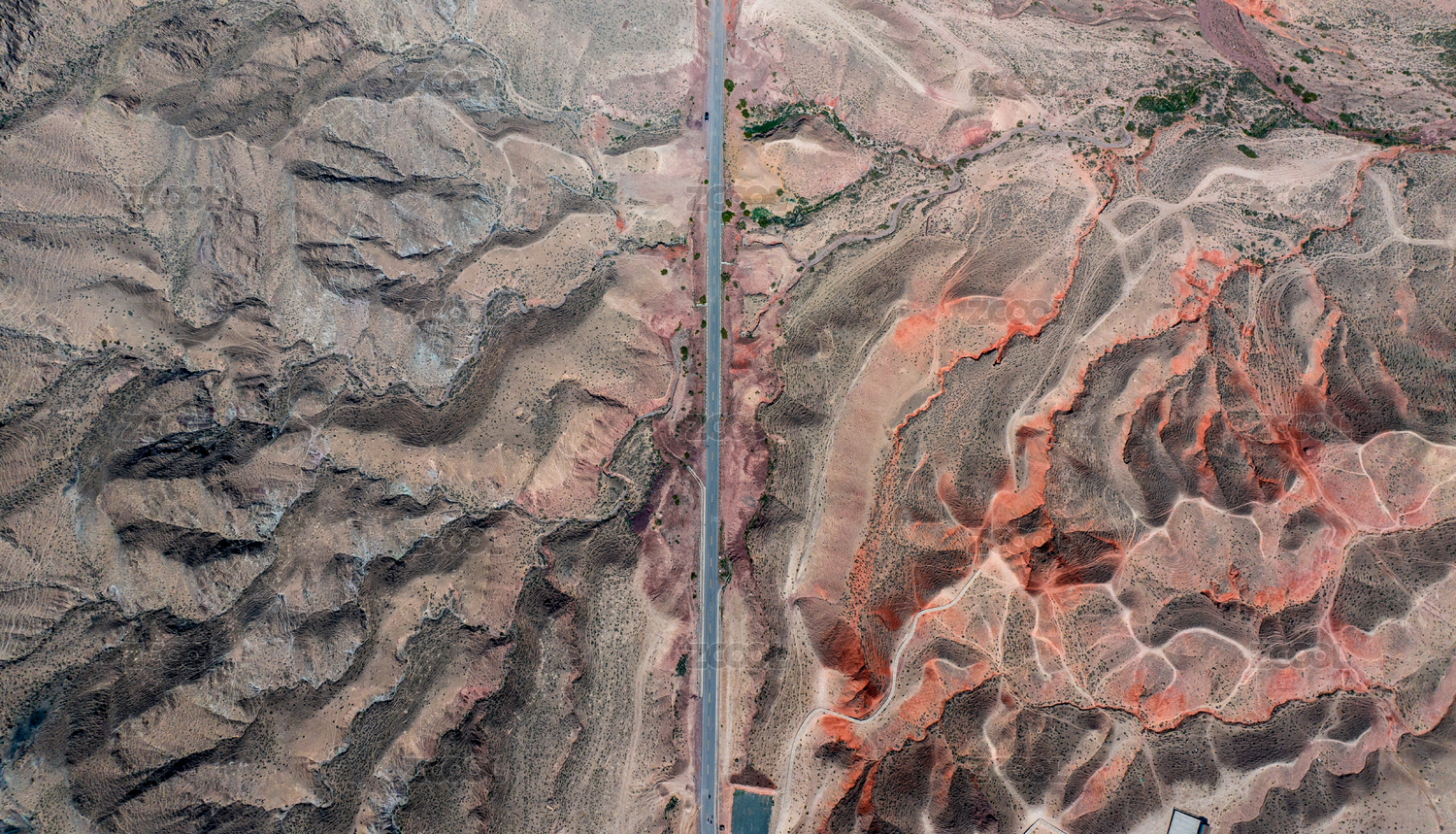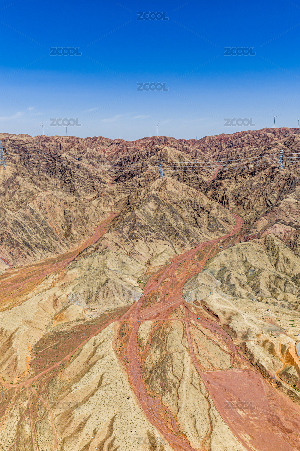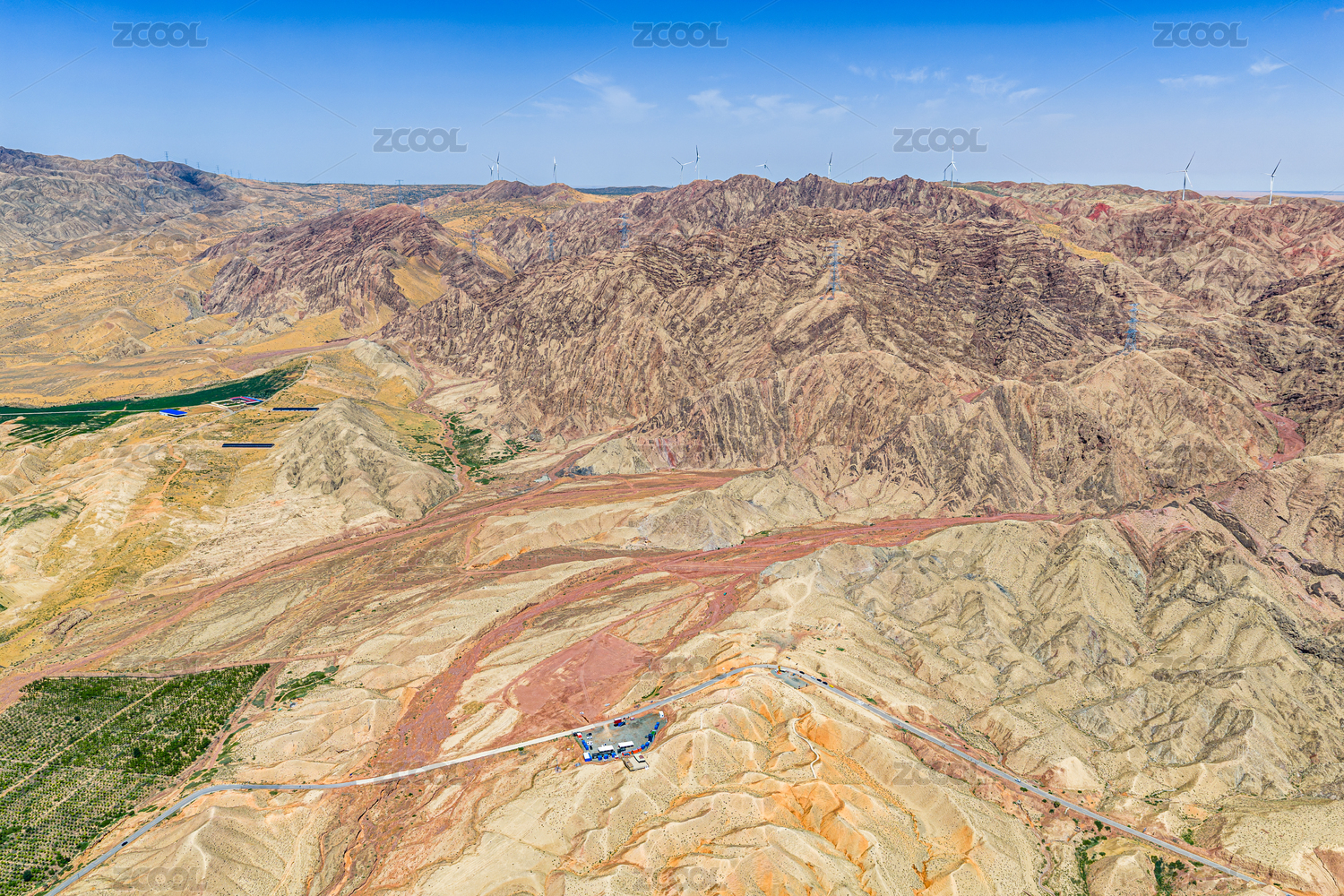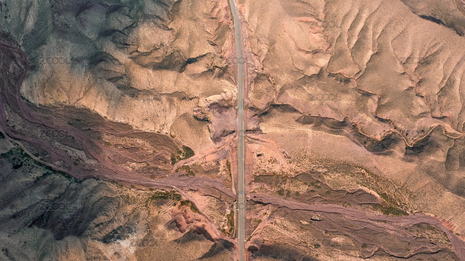 中國寧夏中衛(wèi)66號公路和侵蝕地貌航拍視角
