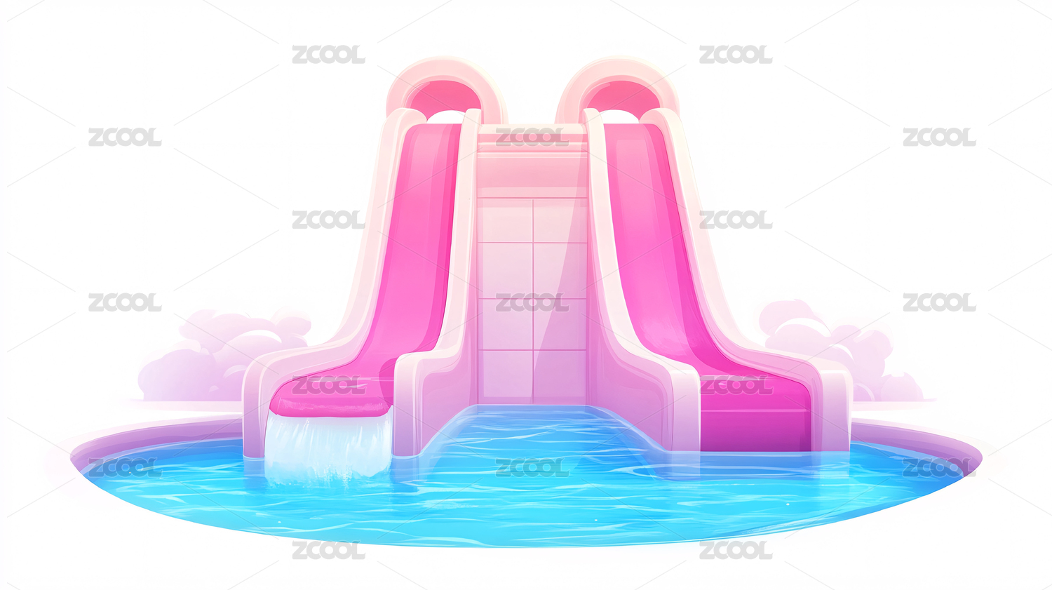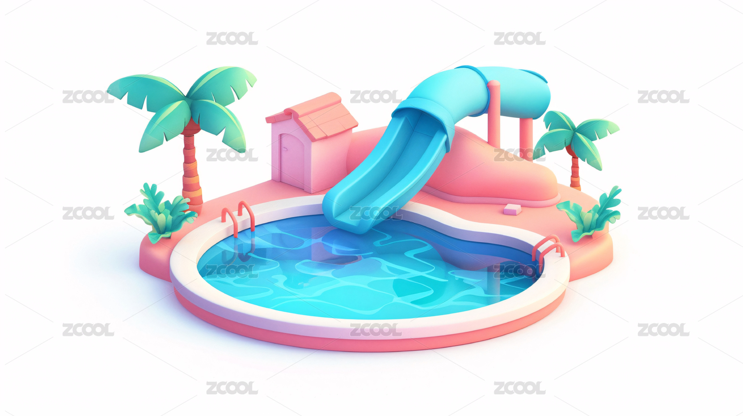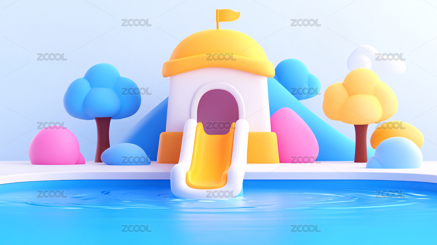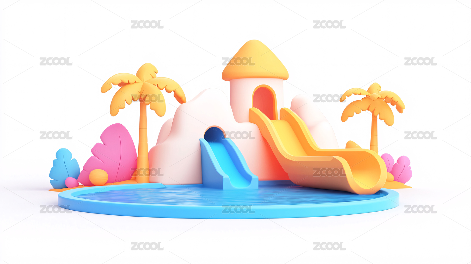 兒童水上樂(lè)園夏天游泳池避暑沖浪3D插畫