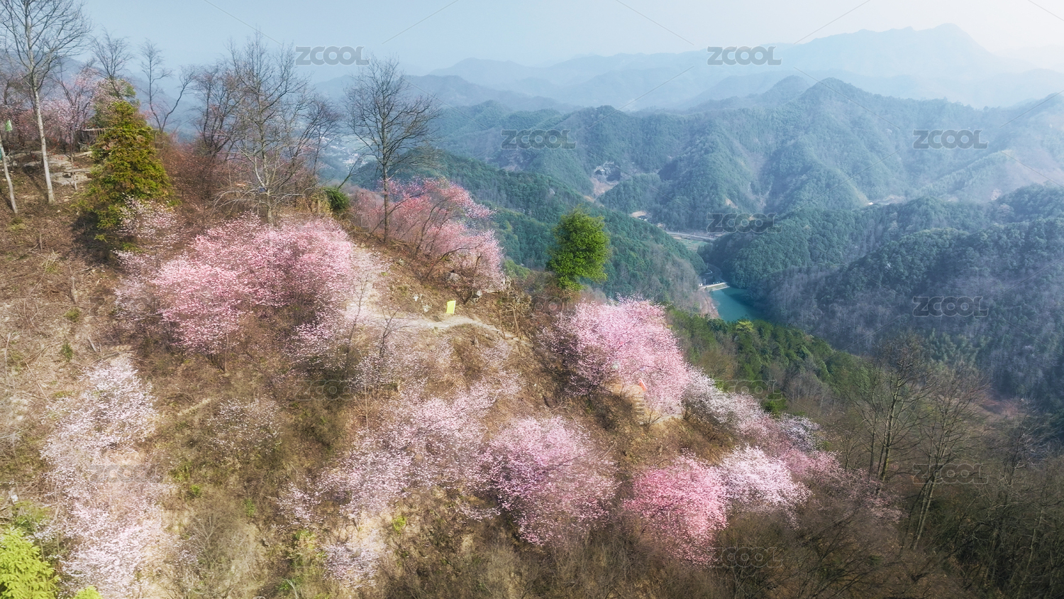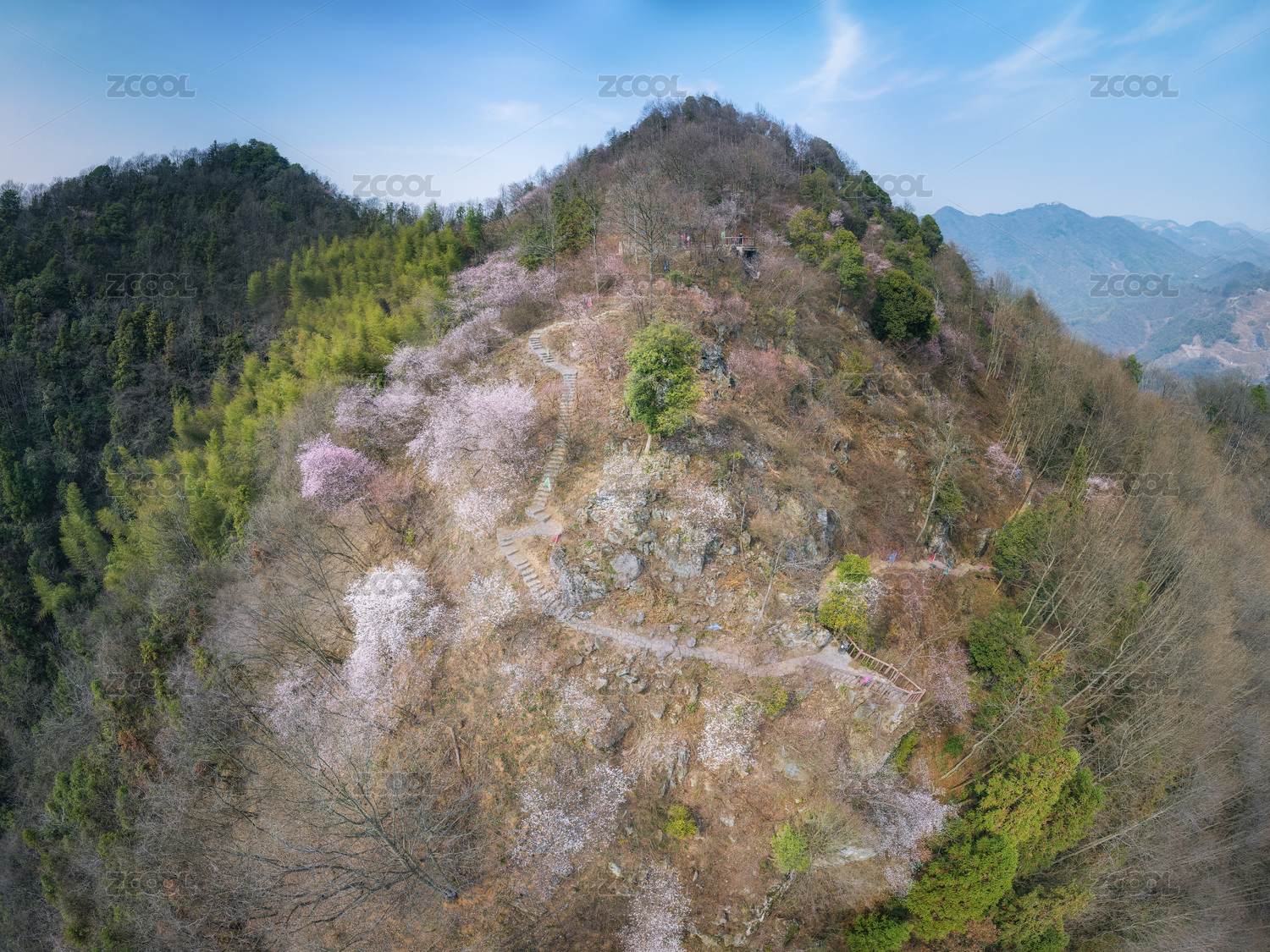 杭州富陽浮云嶺山野櫻花游步道航拍