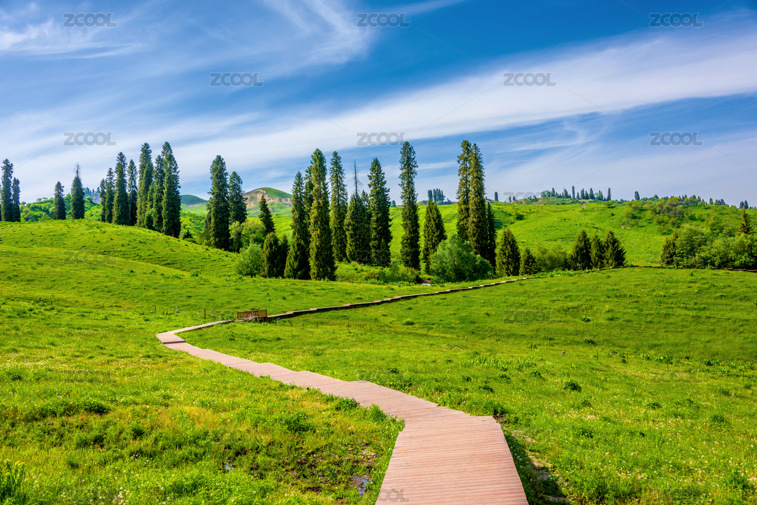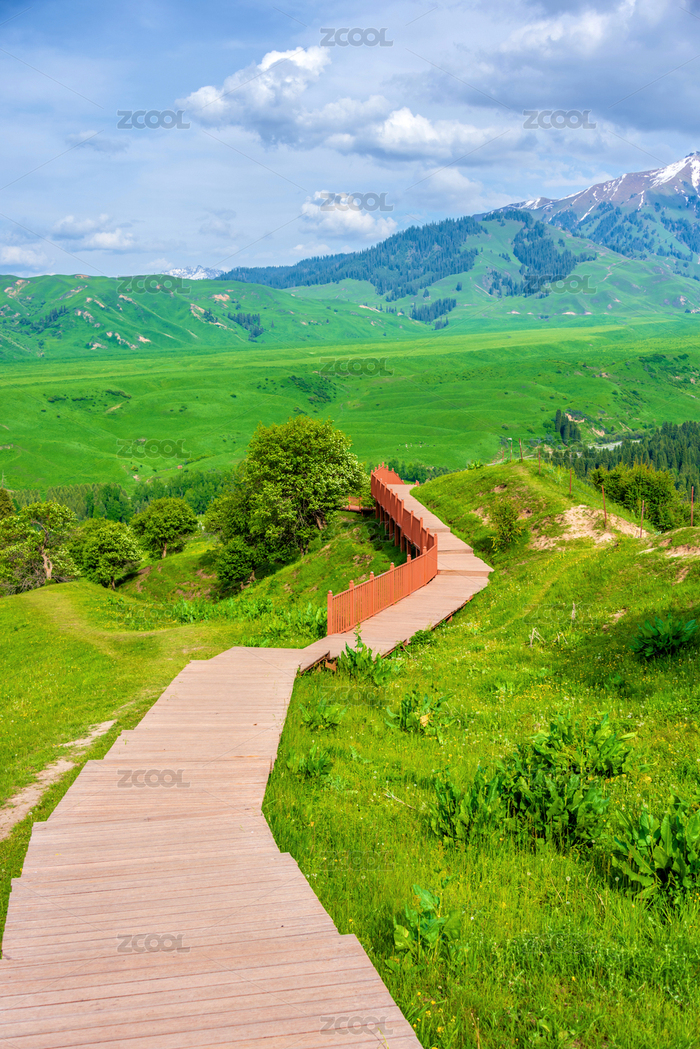 中國新疆伊犁恰西草原風(fēng)景區(qū)旅游步道