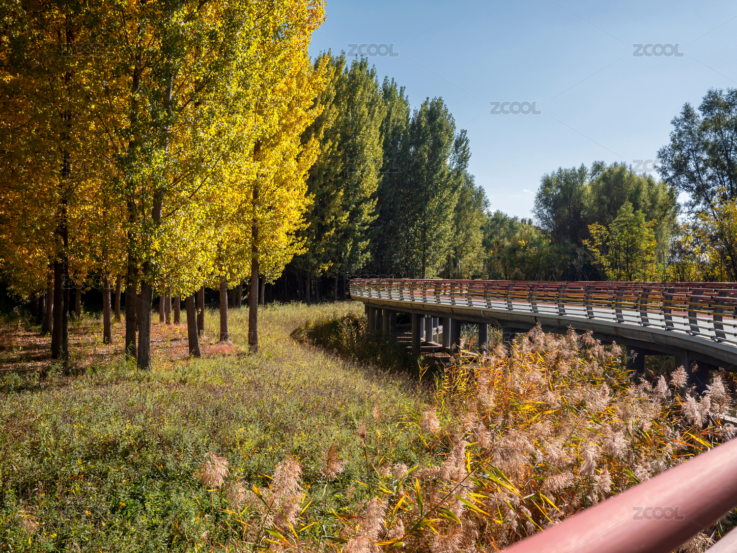 秋天公園里彩色的健步道