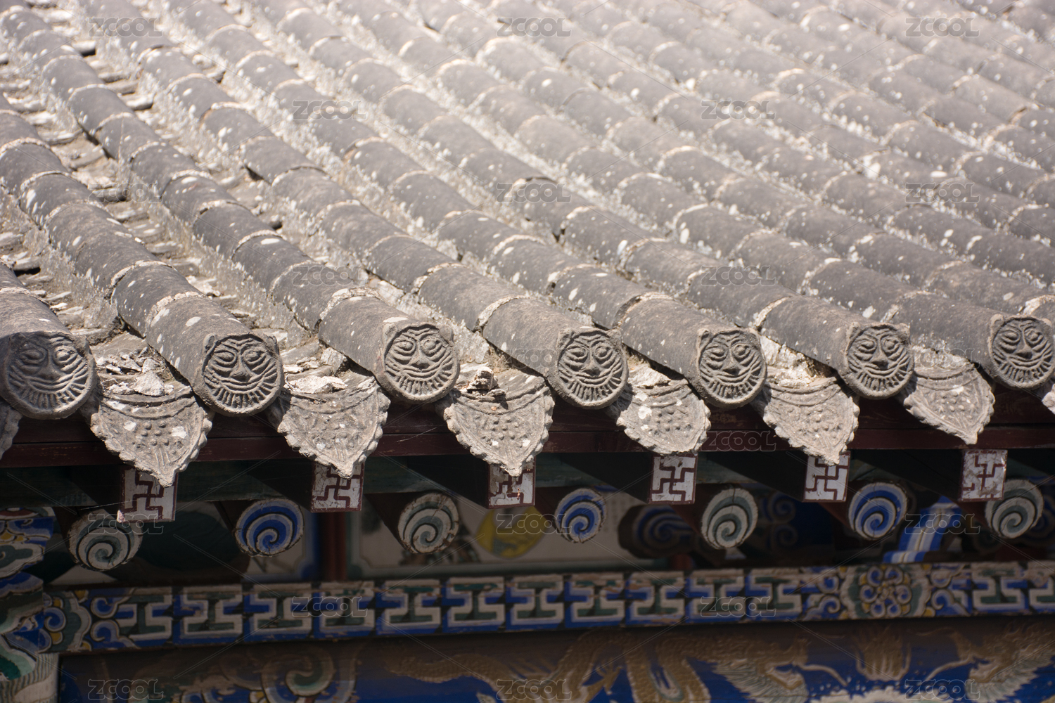 甘肅定西隴西李家龍宮古建筑屋頂上的瓦特寫