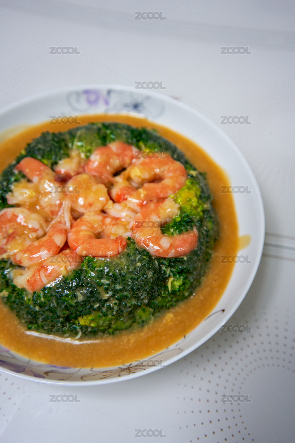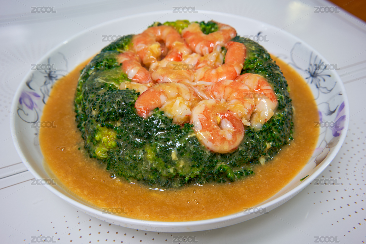 一碟美味的中國(guó)家常菜,西藍(lán)花蝦球