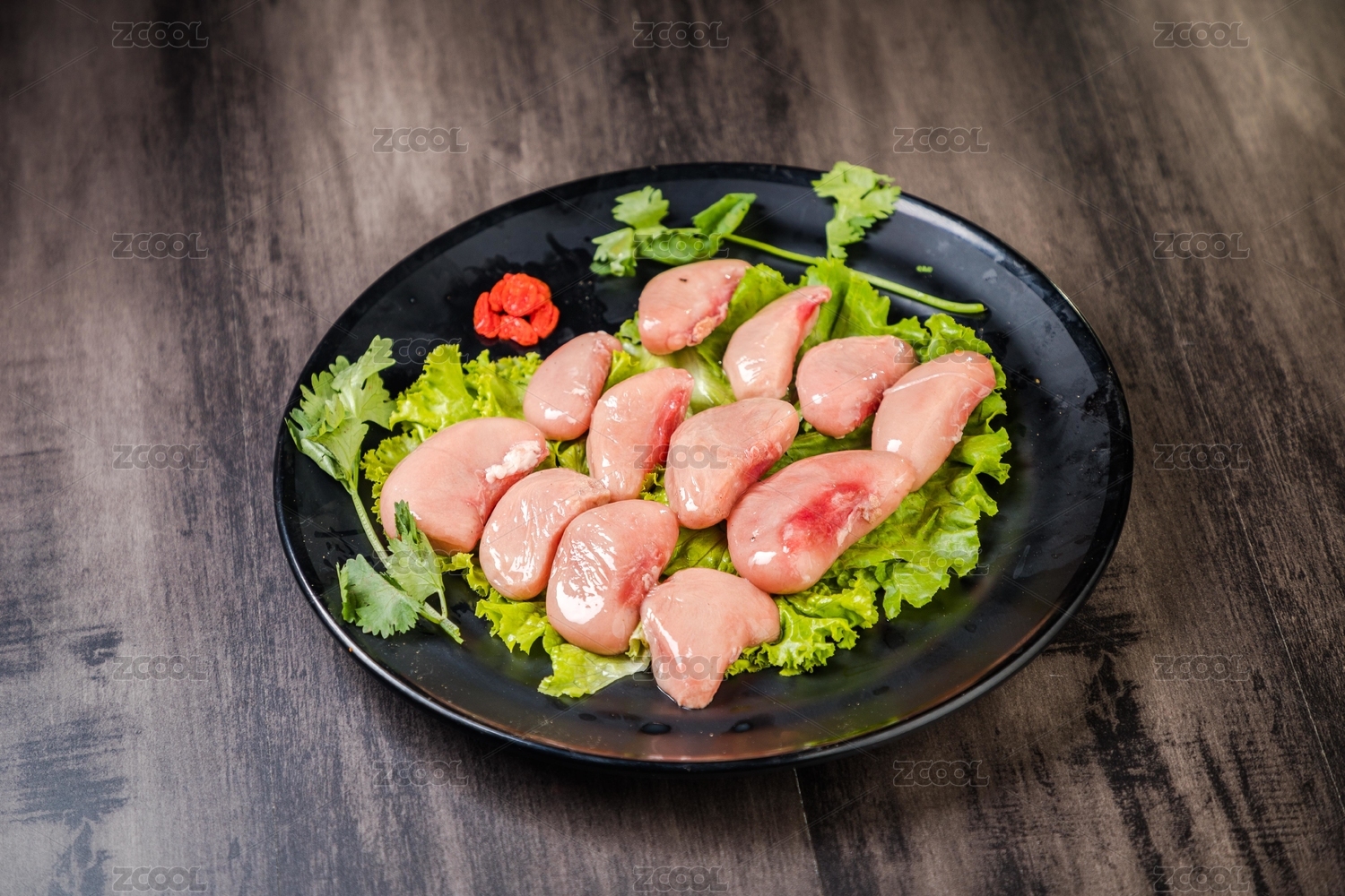 放在藍(lán)色盤子中的雞鮮腰