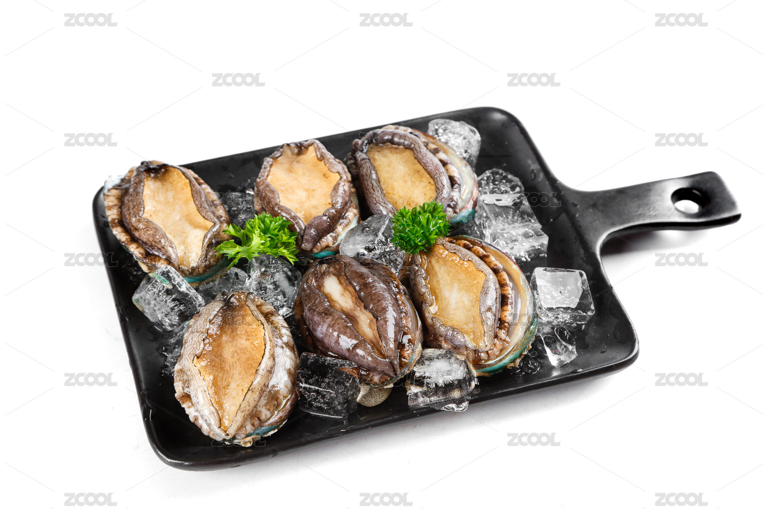 木底上碗里放著一個(gè)鮮凍大鮑魚