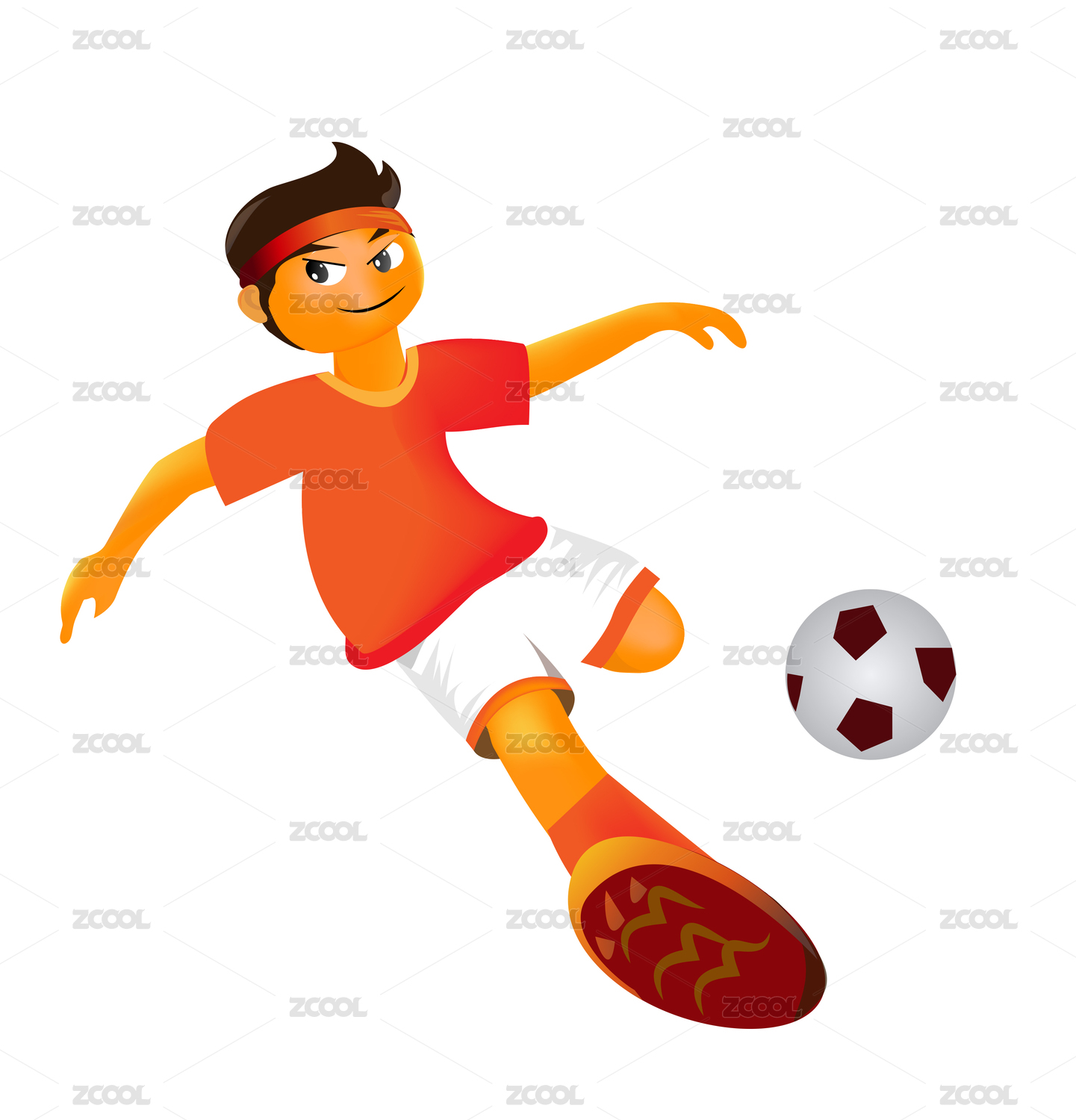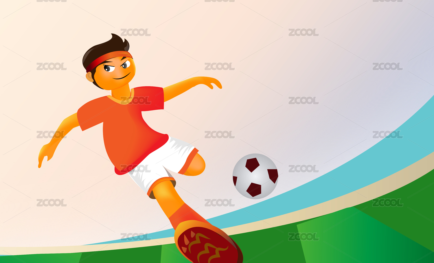 足球小將奔馳在綠茵賽場上的插畫