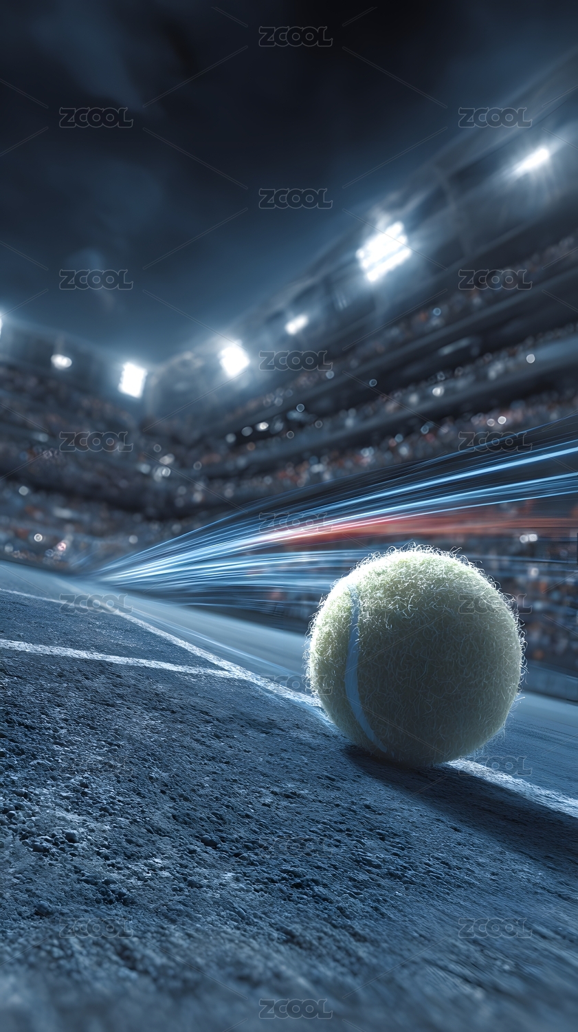 夜間網(wǎng)球賽場上靜止的網(wǎng)球