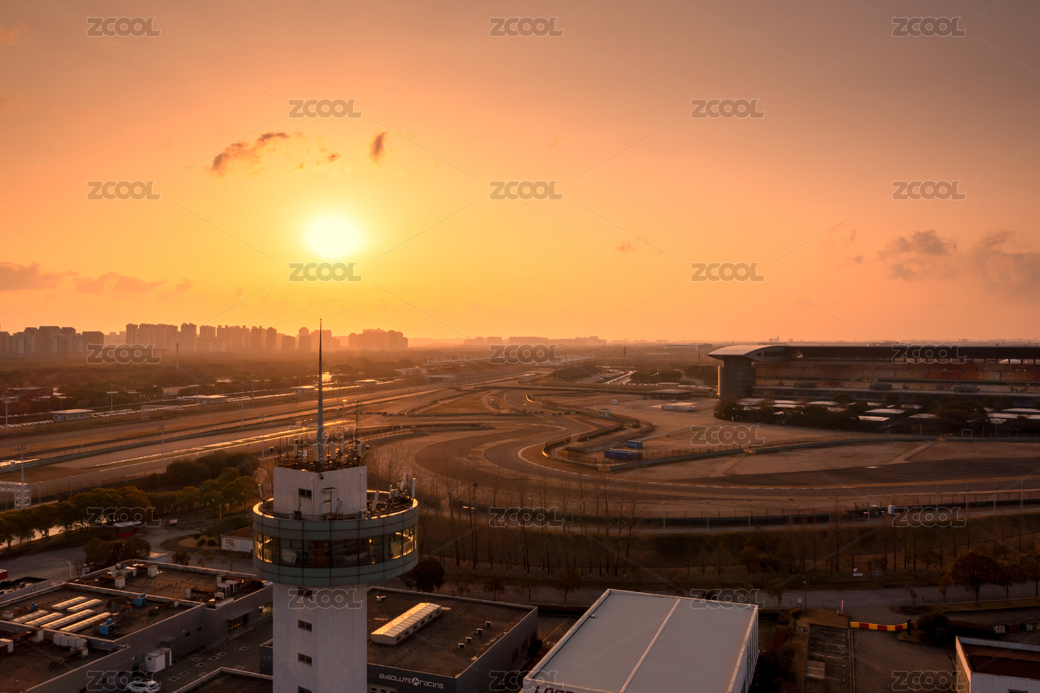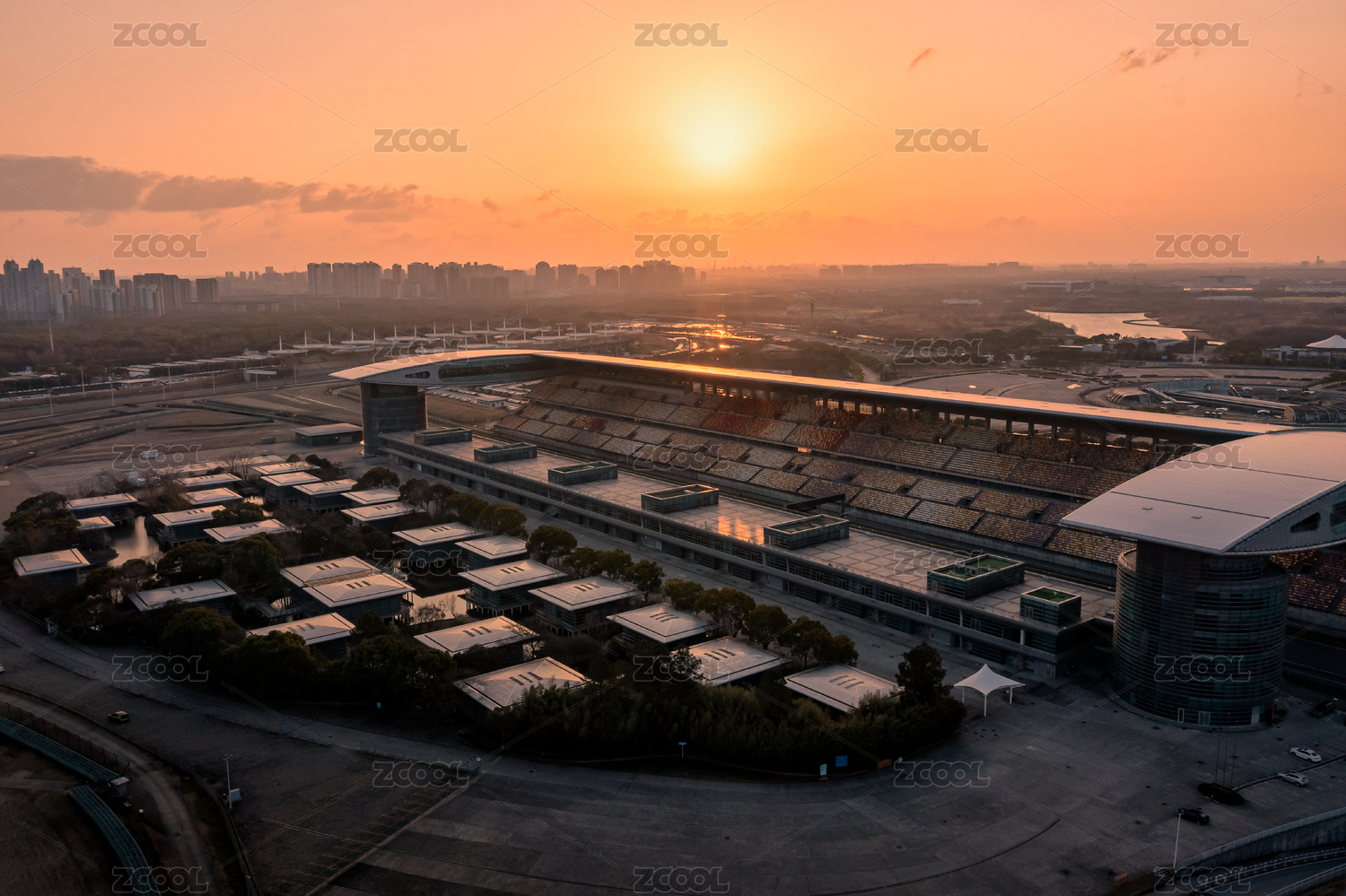 上海市嘉定區(qū)F1賽車場日出航拍風(fēng)景