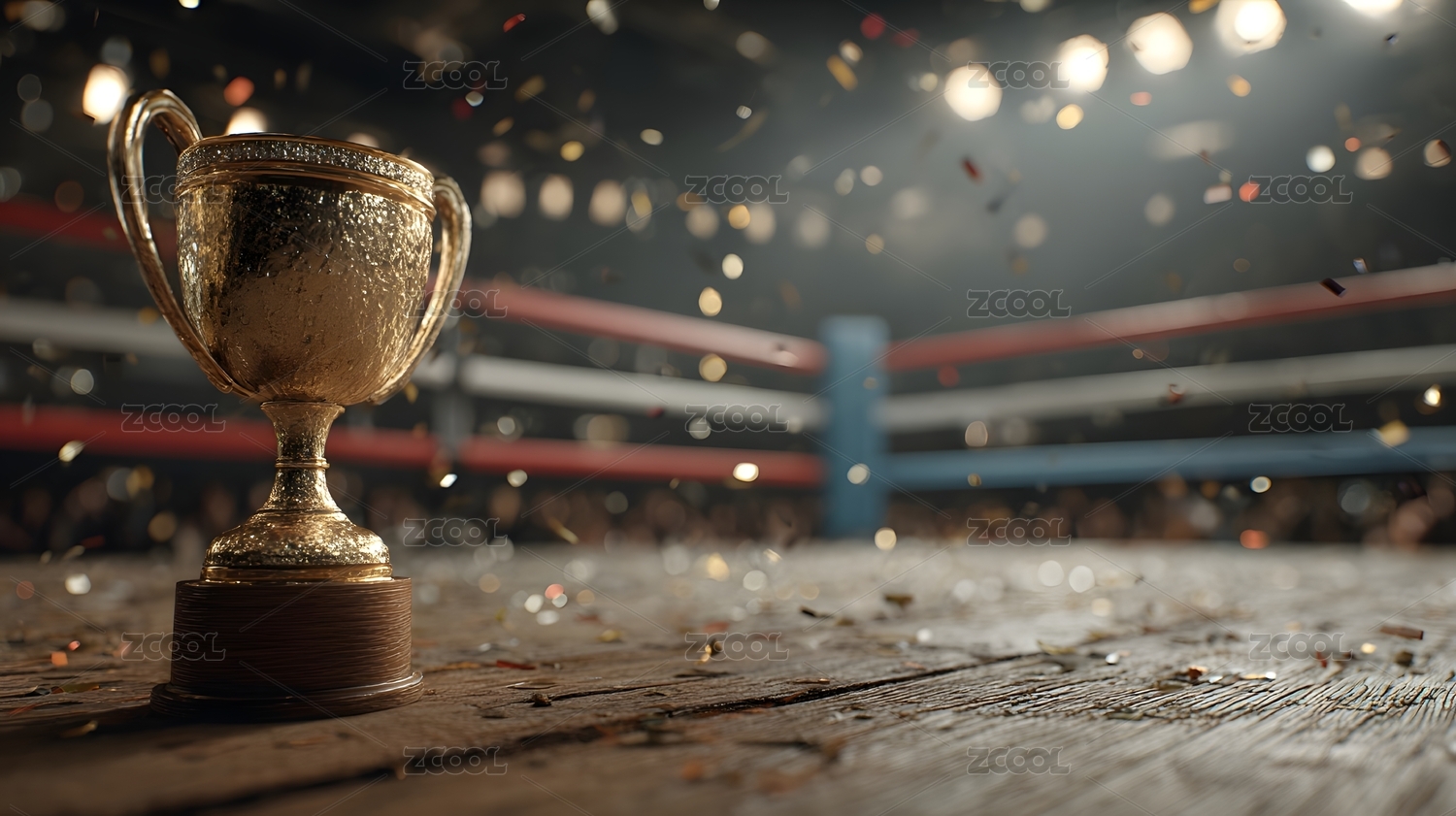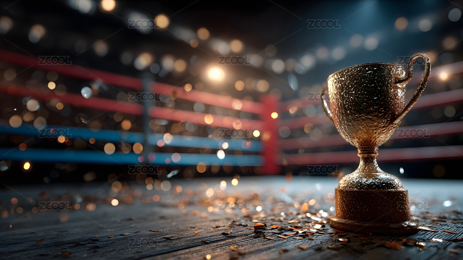 拳擊賽場上的金色獎(jiǎng)杯