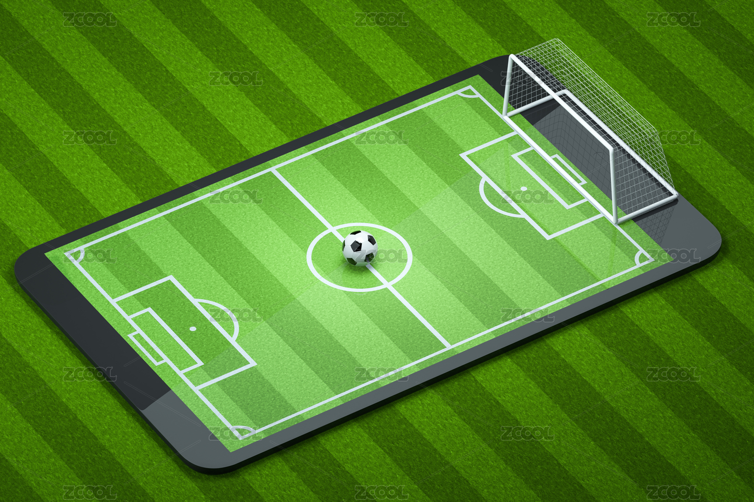 平板電腦上的足球賽場 3D渲染