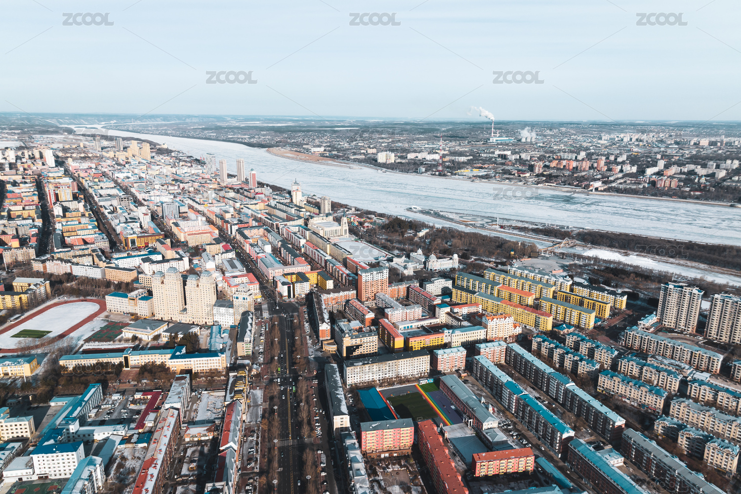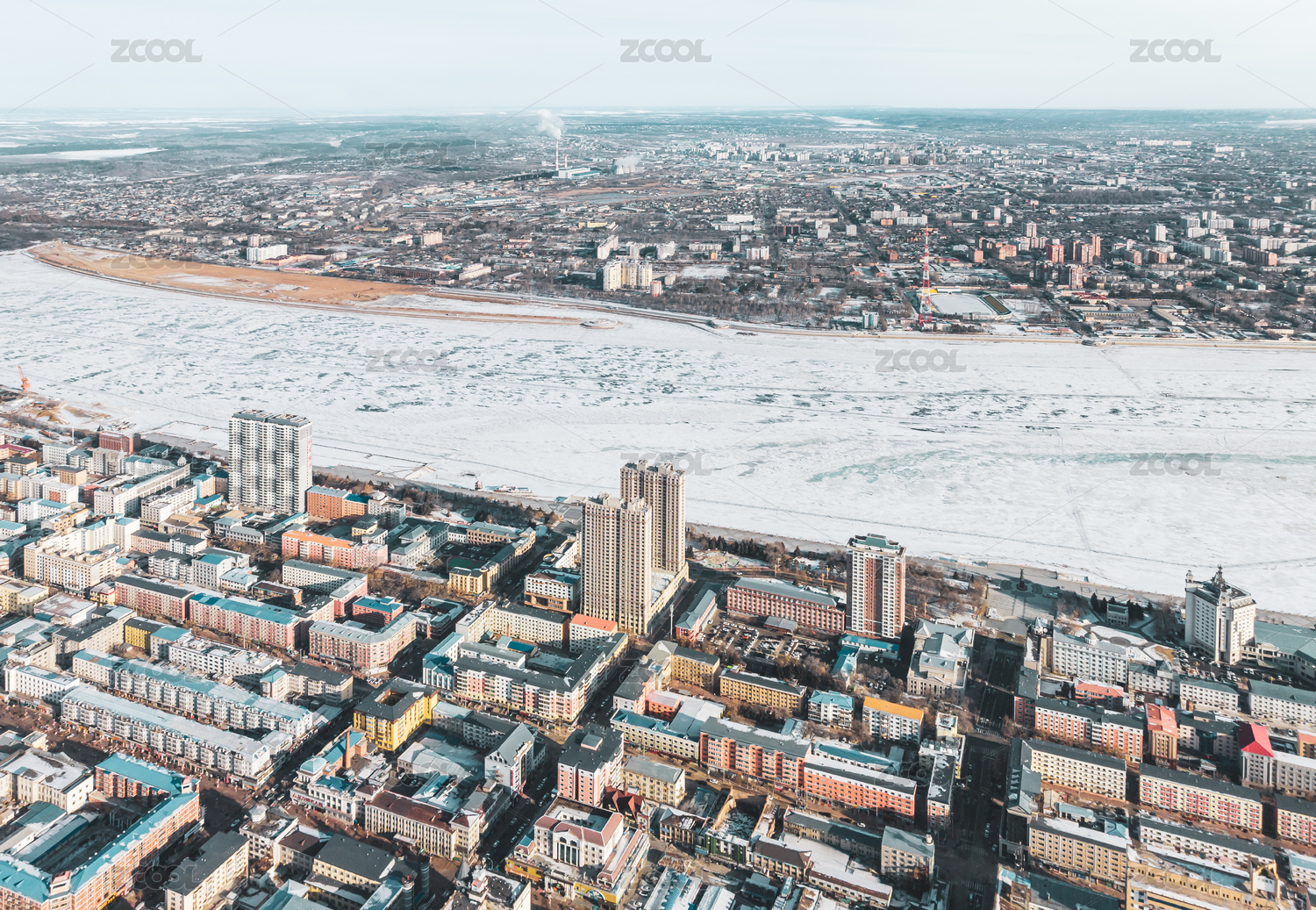 冬季黑龍江黑河市海蘭泡城市建筑航拍風光
