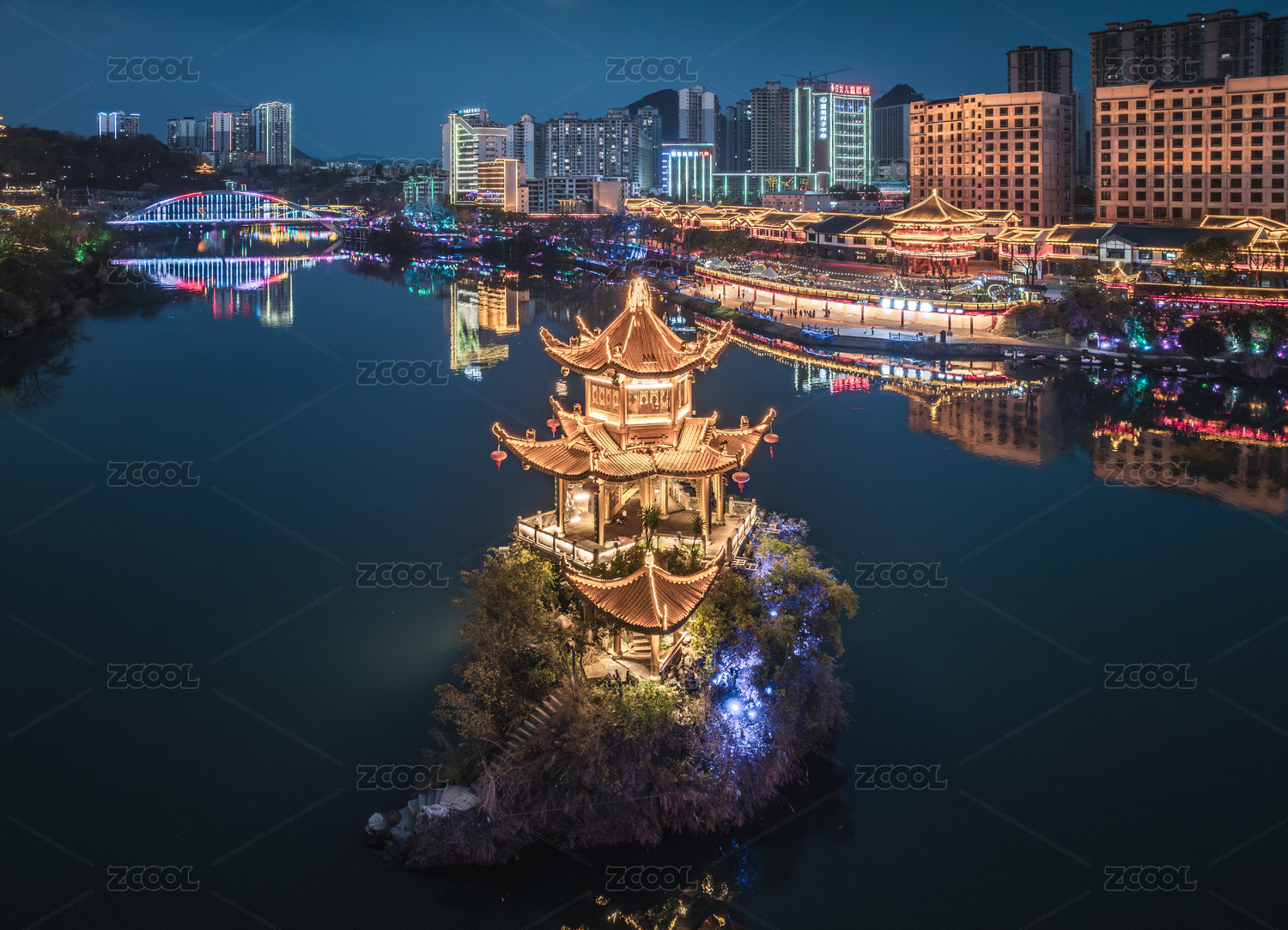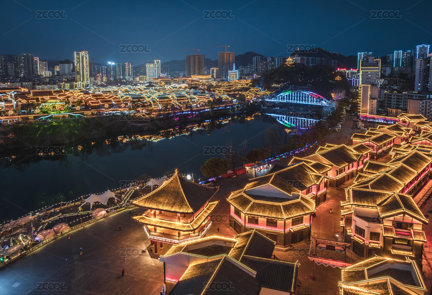 貴州銅仁市中南門古城錦江城市高樓夜景航拍