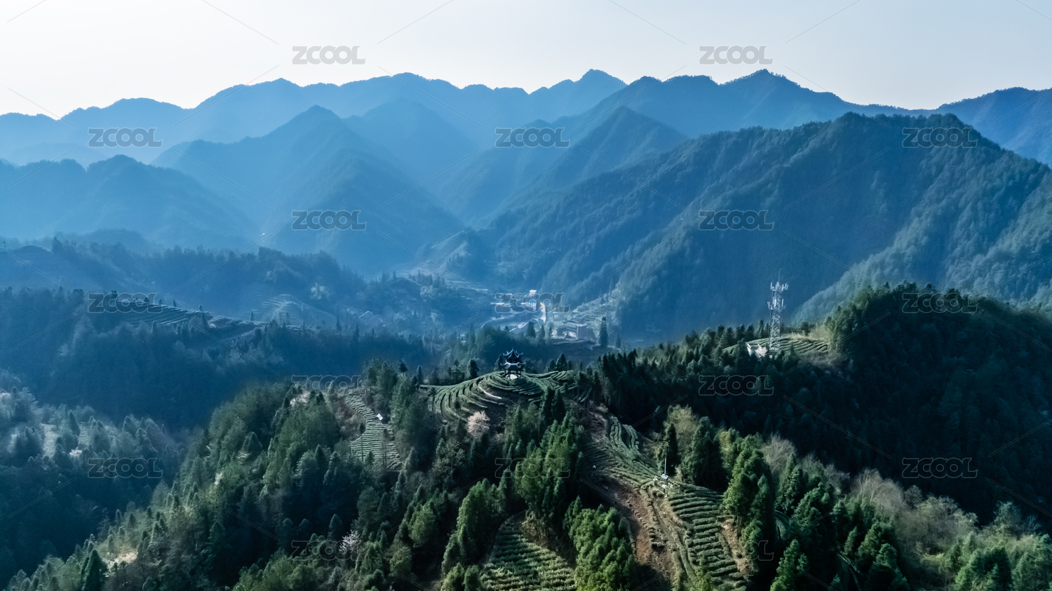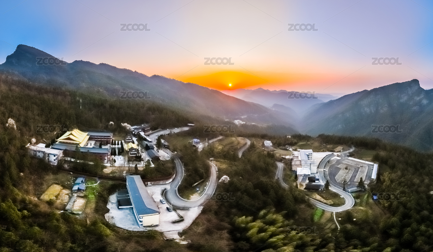 中國貴州省銅仁市黃昏夕陽梵凈山景區(qū)建筑