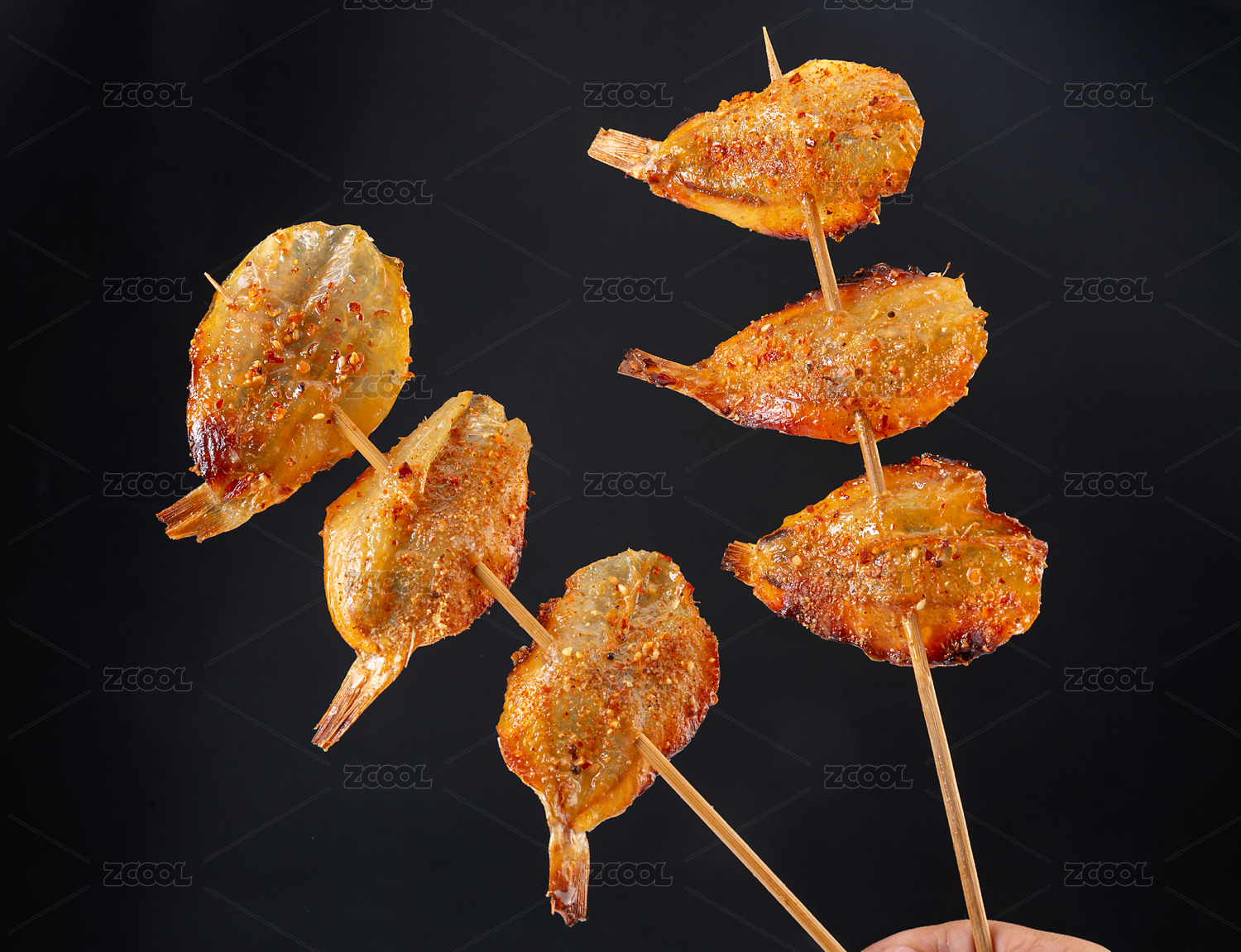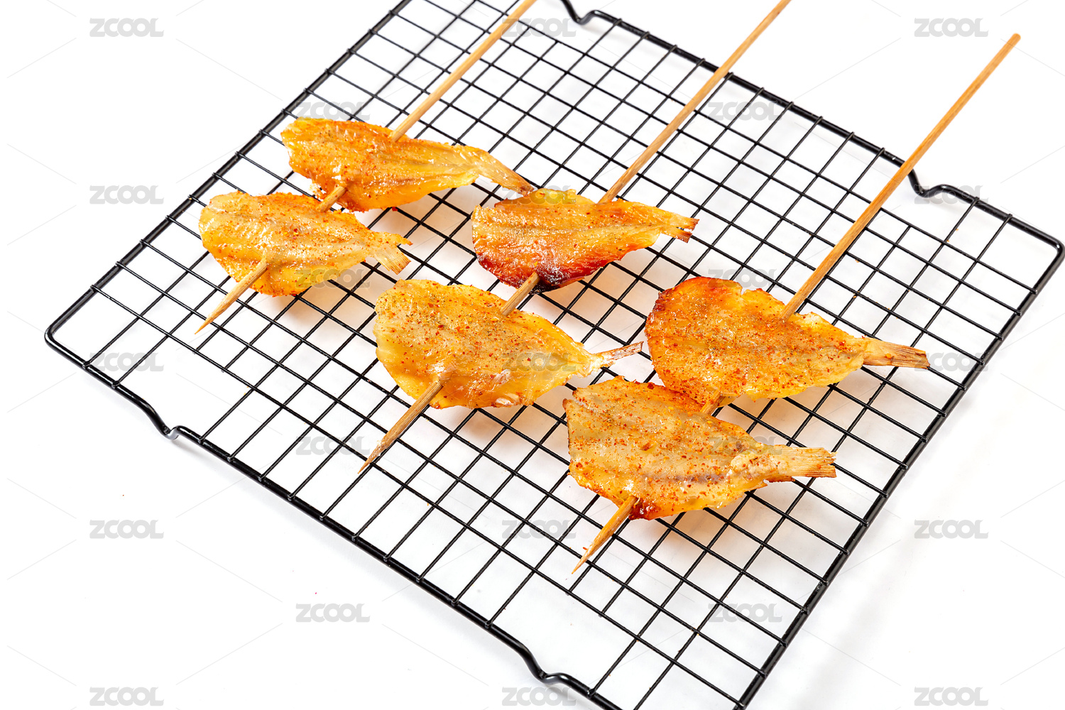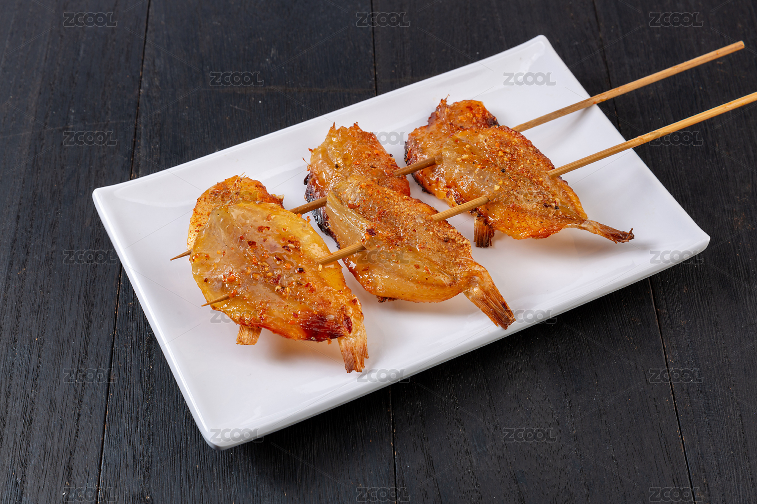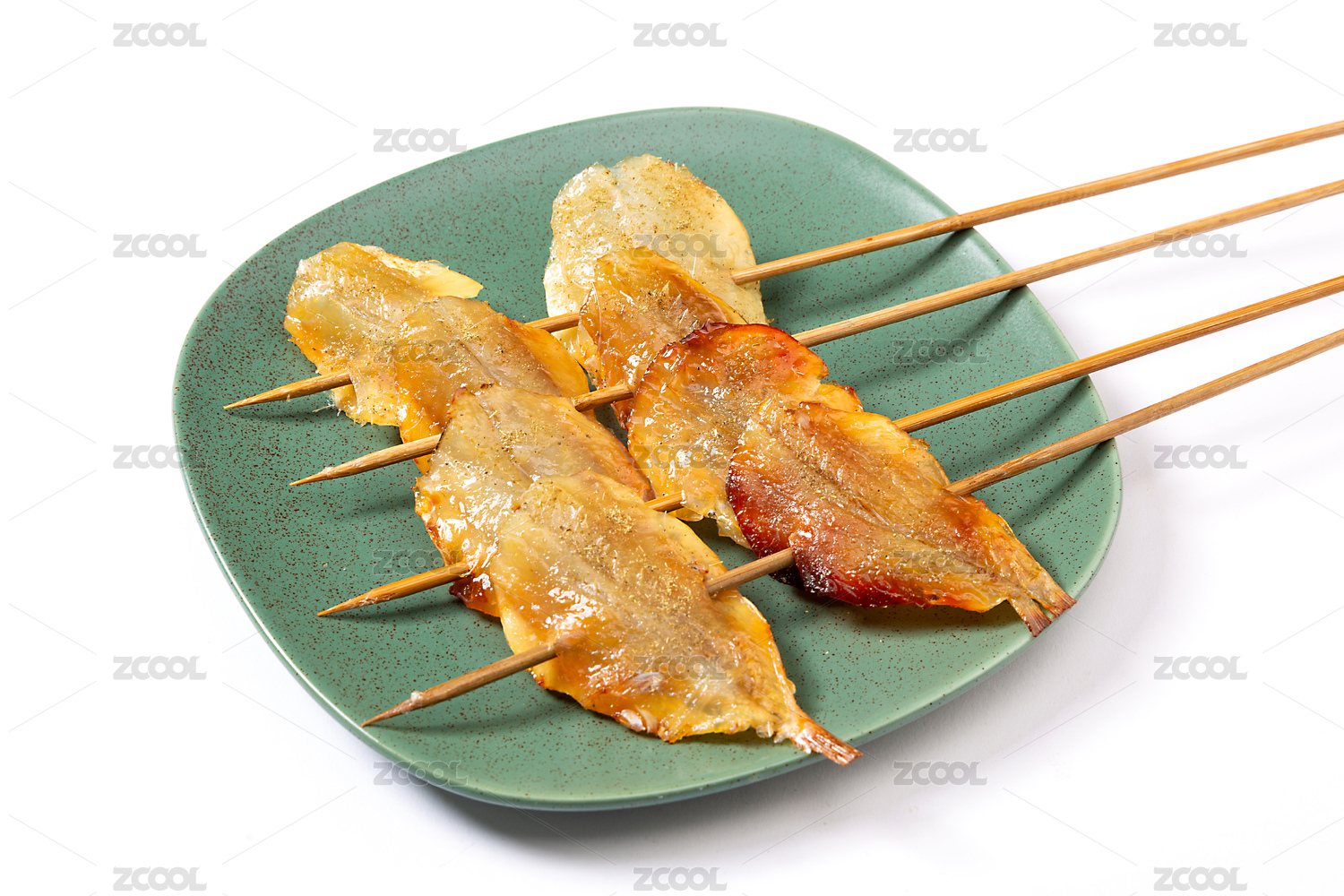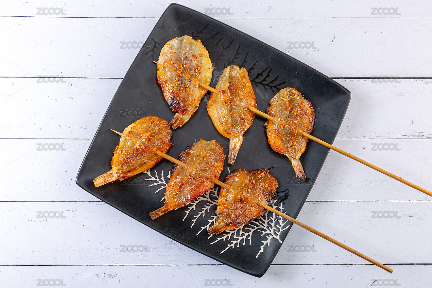白底上的多味魚烤串