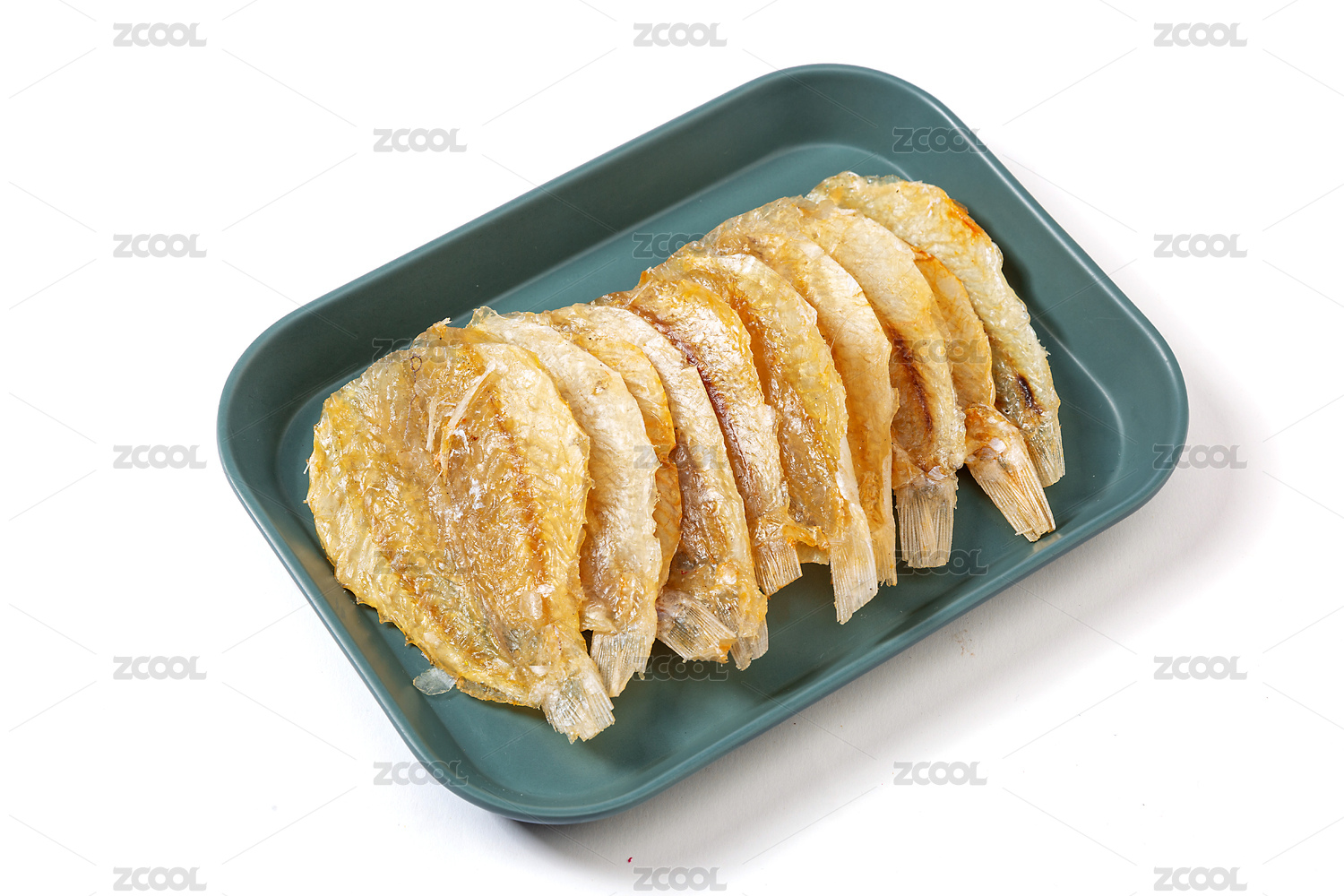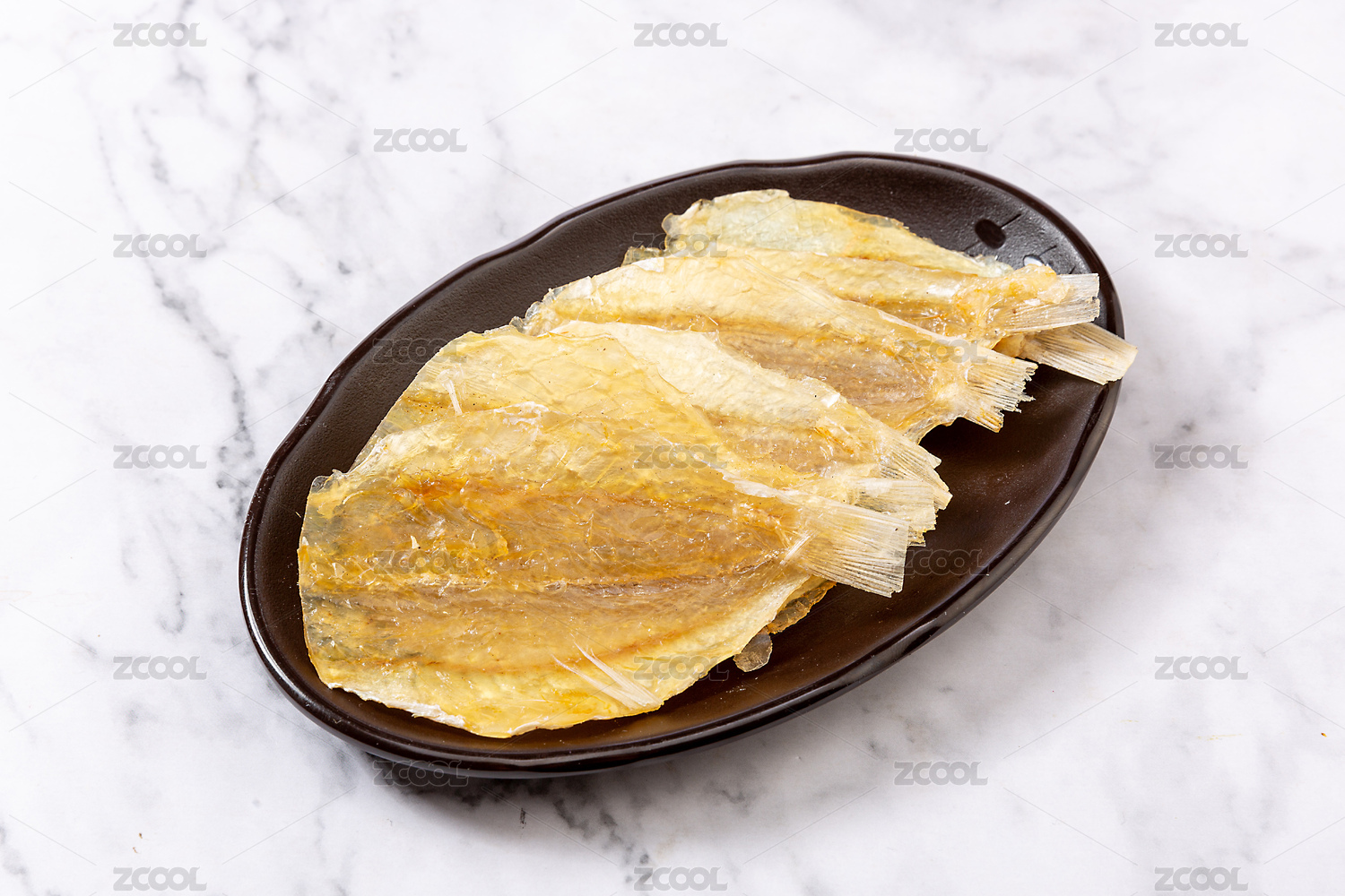 裝在盤子里的多味魚干貨食材