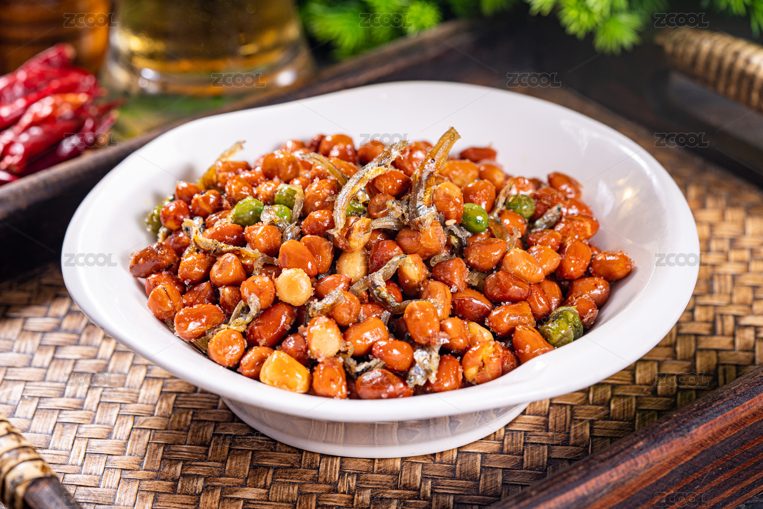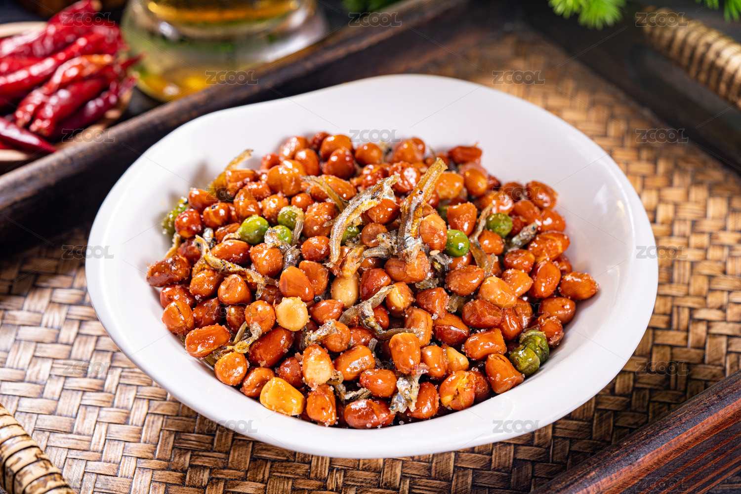 餐盤里的小魚花生米
