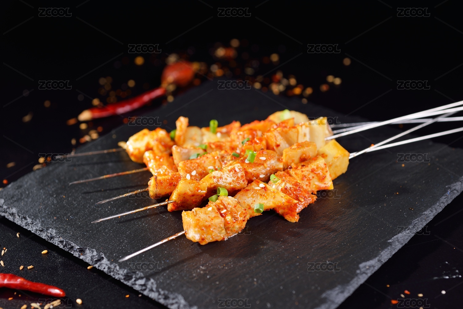 燒烤烤牛板筋放在黑色巖石盤上