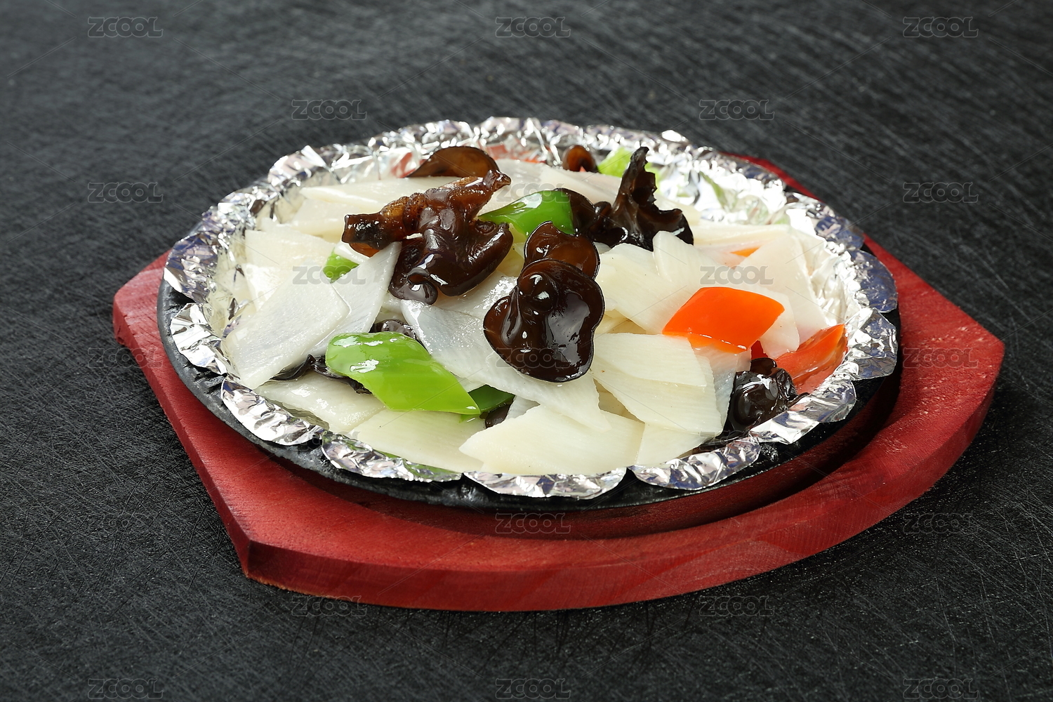 錫泊紙上的山藥炒木耳