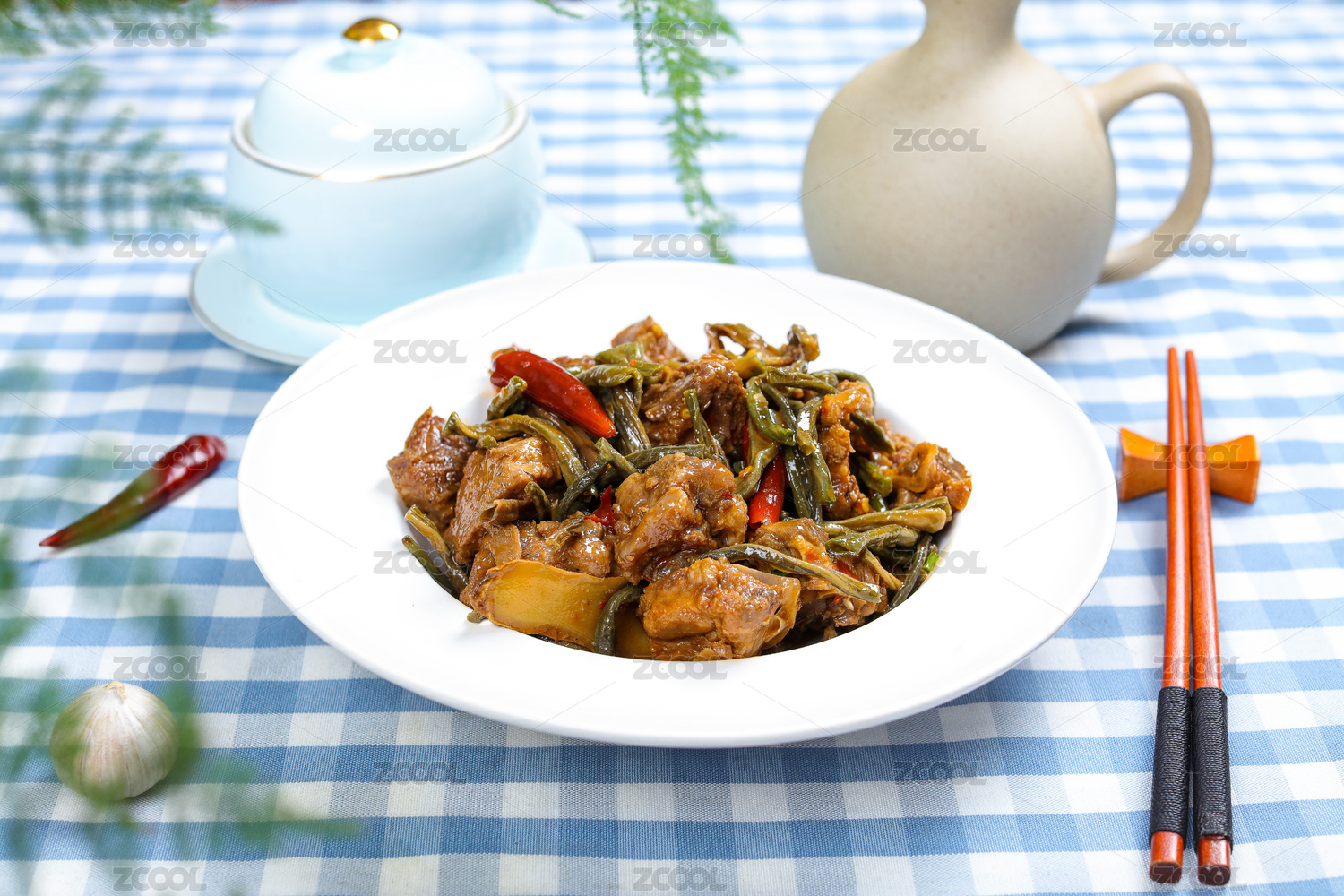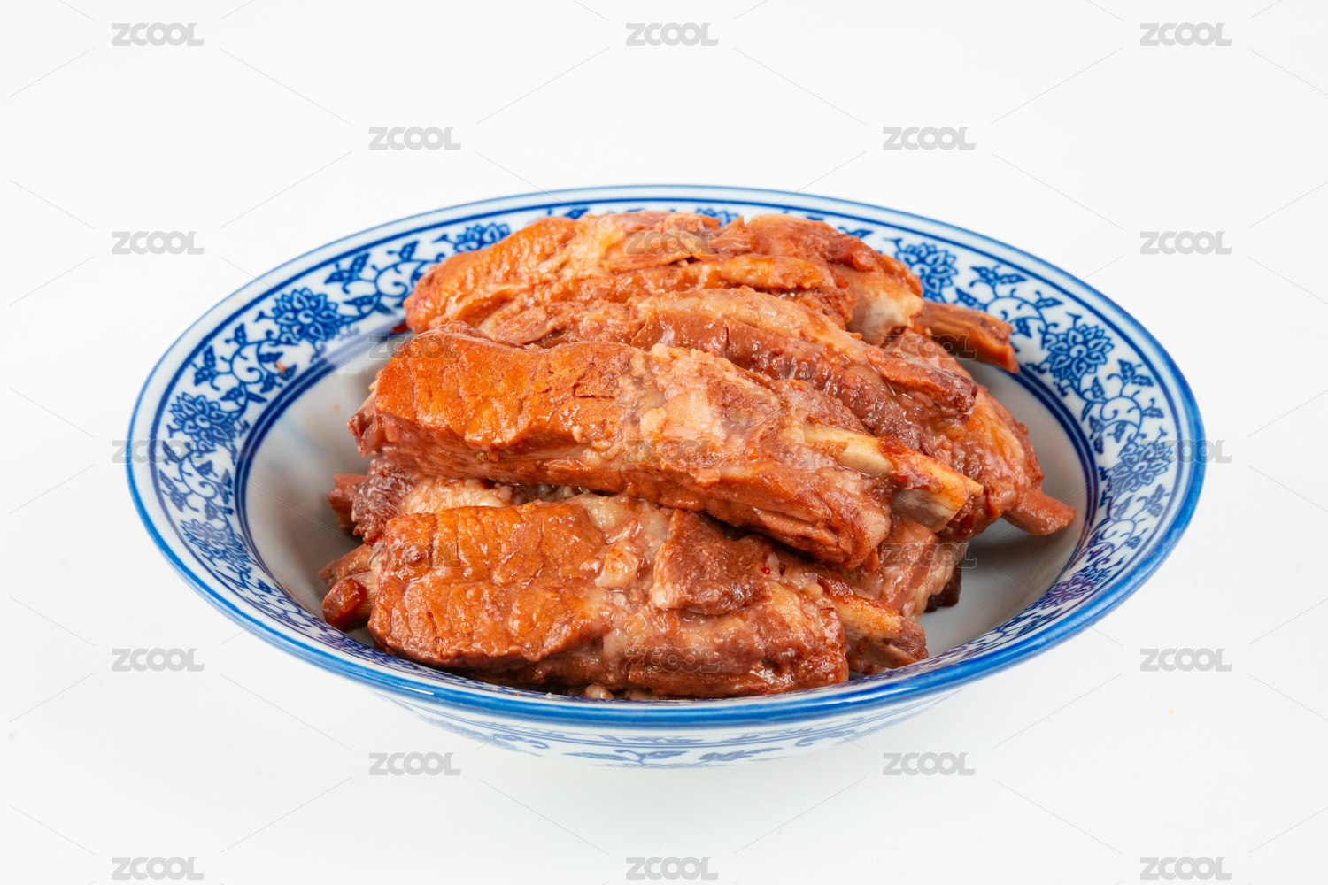 白方盤(pán)里筷子夾著的麻辣干燒排骨